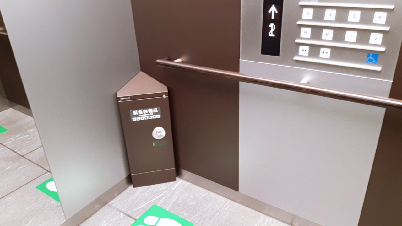 엘베 안에 긴급 비축 상자는 지진같은 재해가 많은 일본에 많이 보입니다.