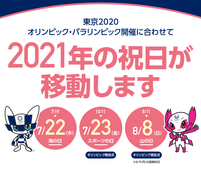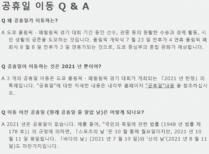 2021년의 공휴일이 이동됩니다.
