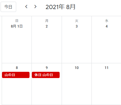 8월의 휴일은 8월 8일(폐막식) 산의 날, 이 일요일이라..