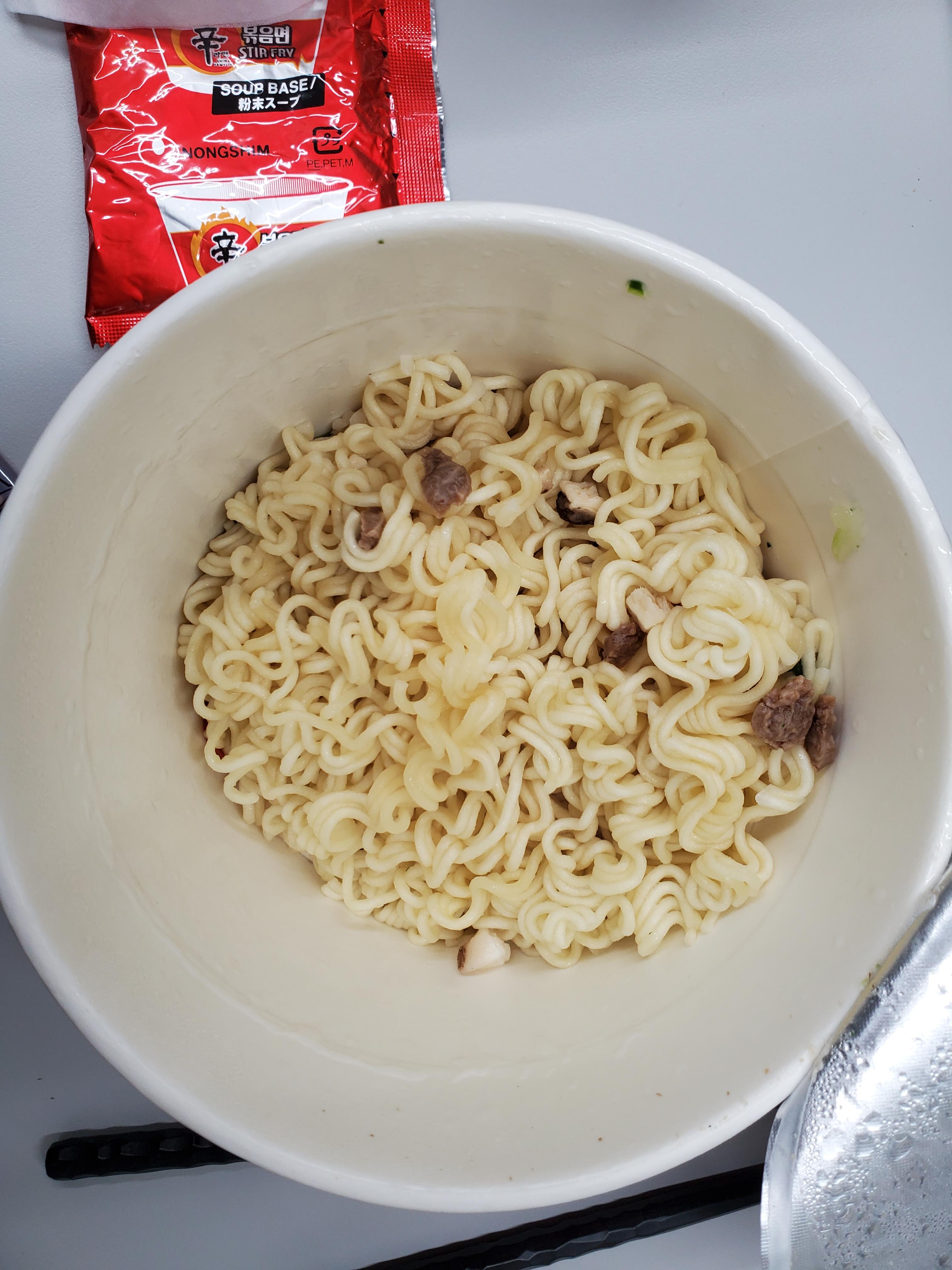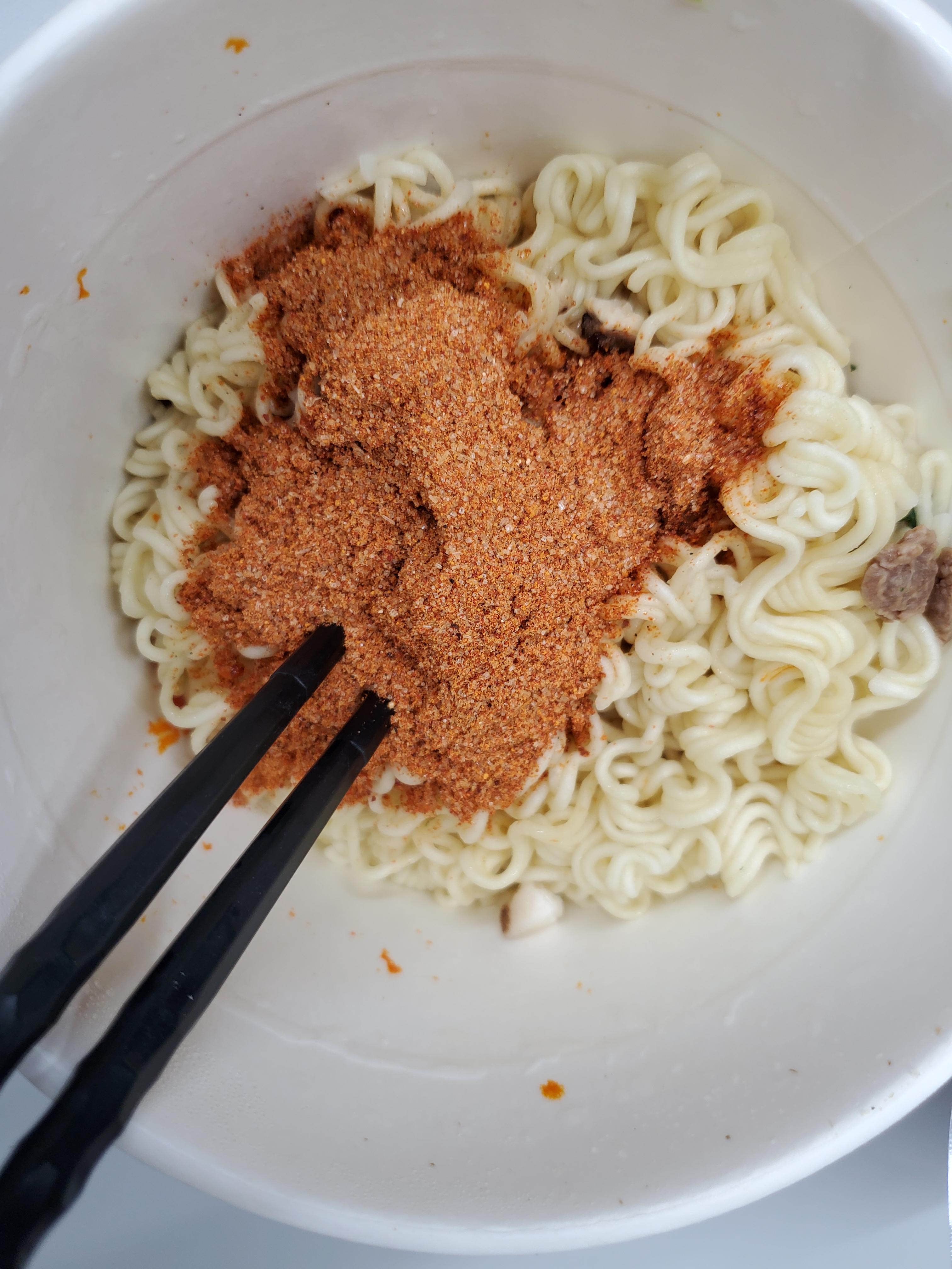 볶음면은 물 넣고 3분 익히고 물 버리고 스프 섞섞. OK