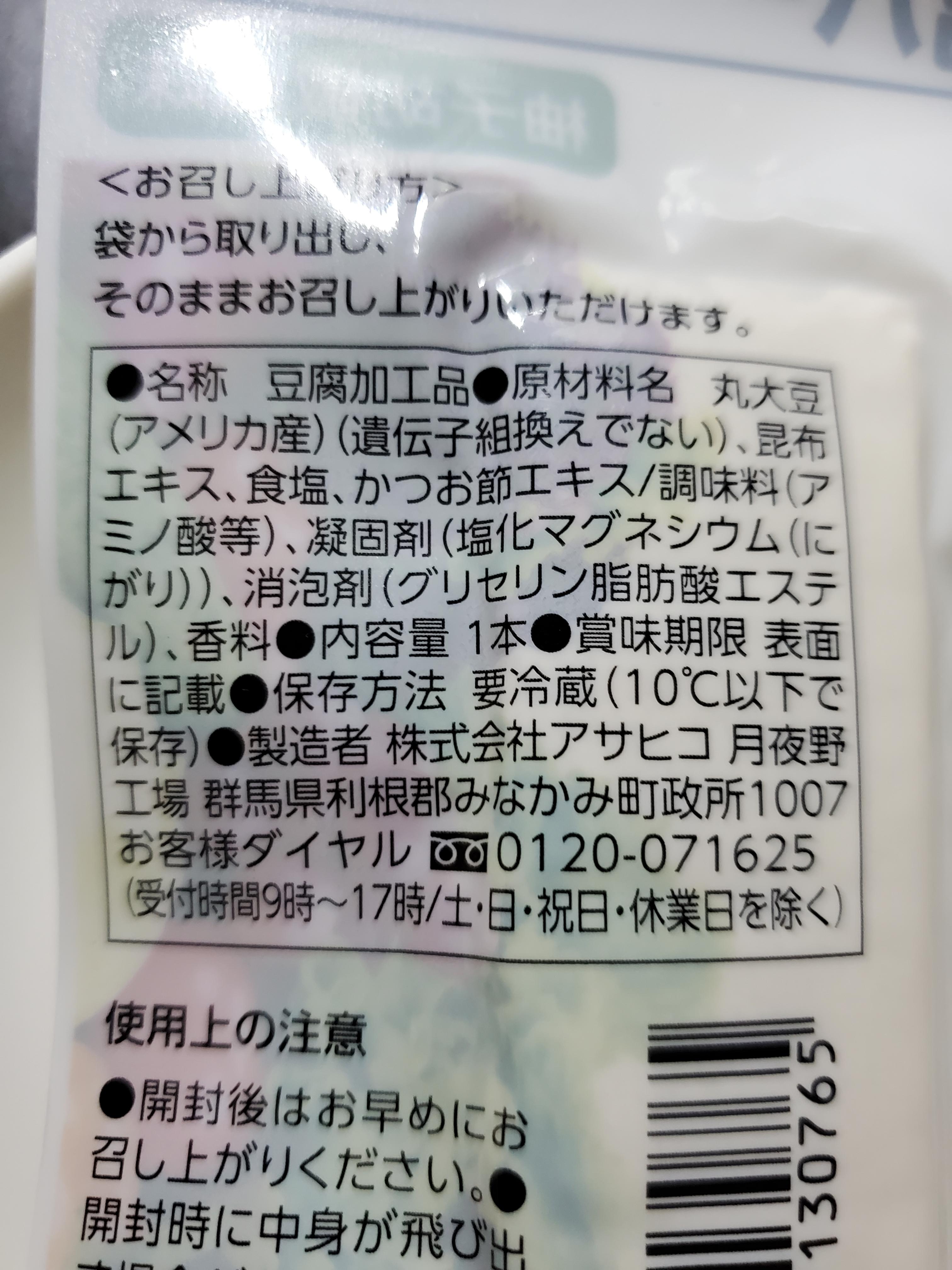 두부 기업인 아사히코가 개발해서 세븐일레븐이 독점 판매 중이랍니다.