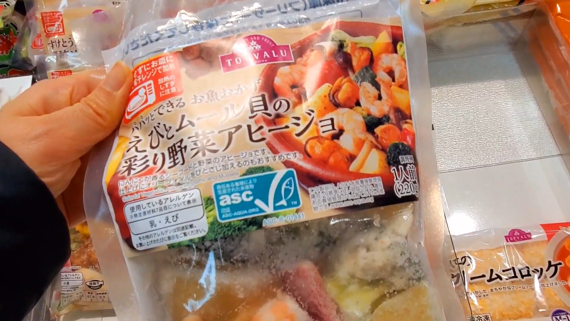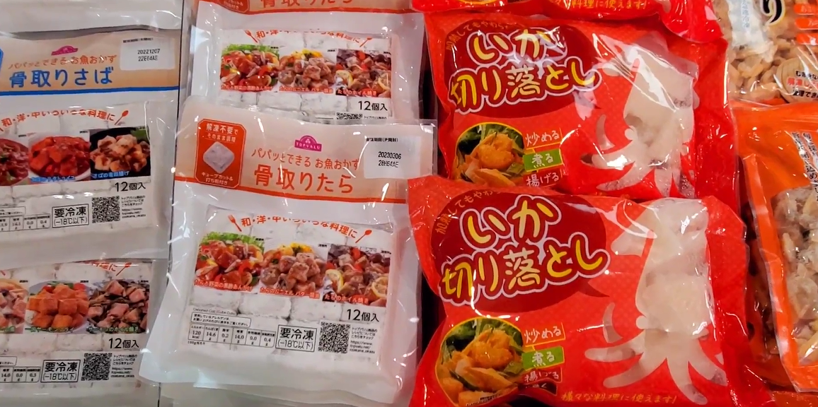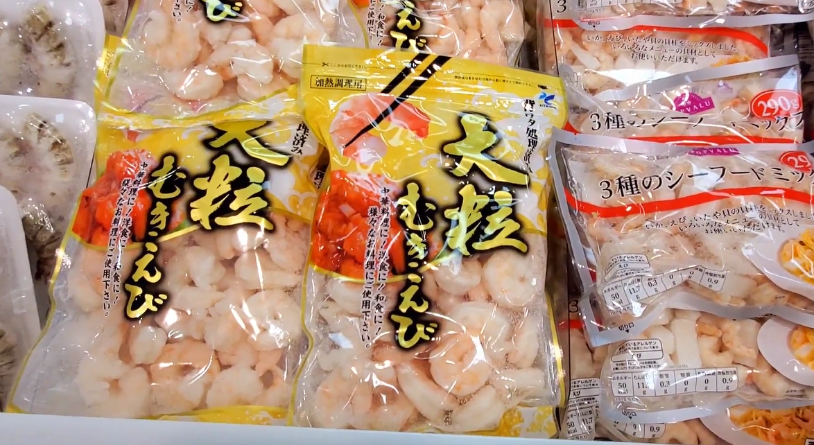 냉동 해산물 식품 코너를 살짝 찍었어요