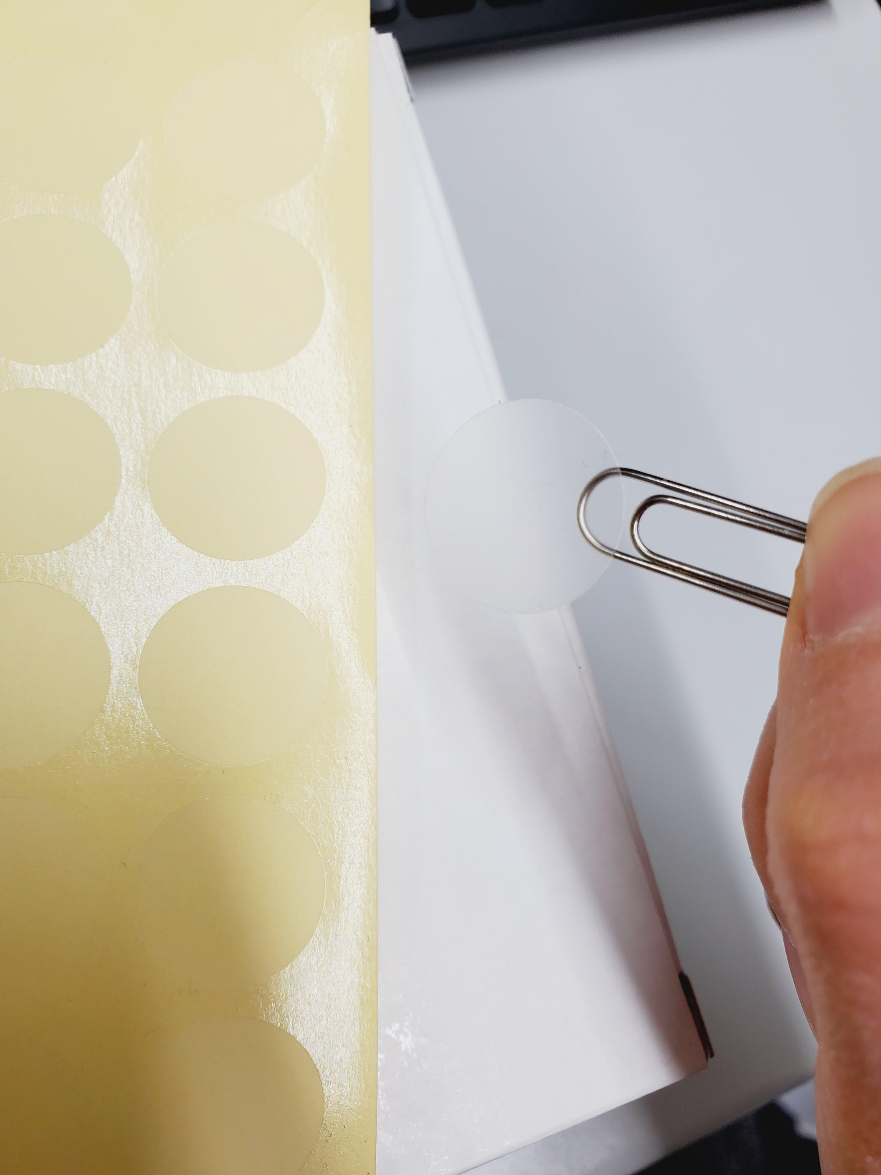 상품에 부착하는 원형 스티커 봉인 씰에 지문이 쫑종 묻어 있어서