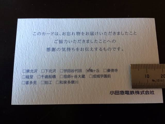 오다큐 역원에게 이런 카드를 받았다고 한다.