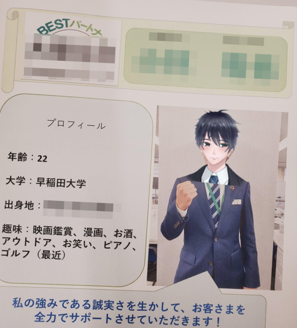 22세 와세다 대학 출신... 이라며 명함을 건넨다.