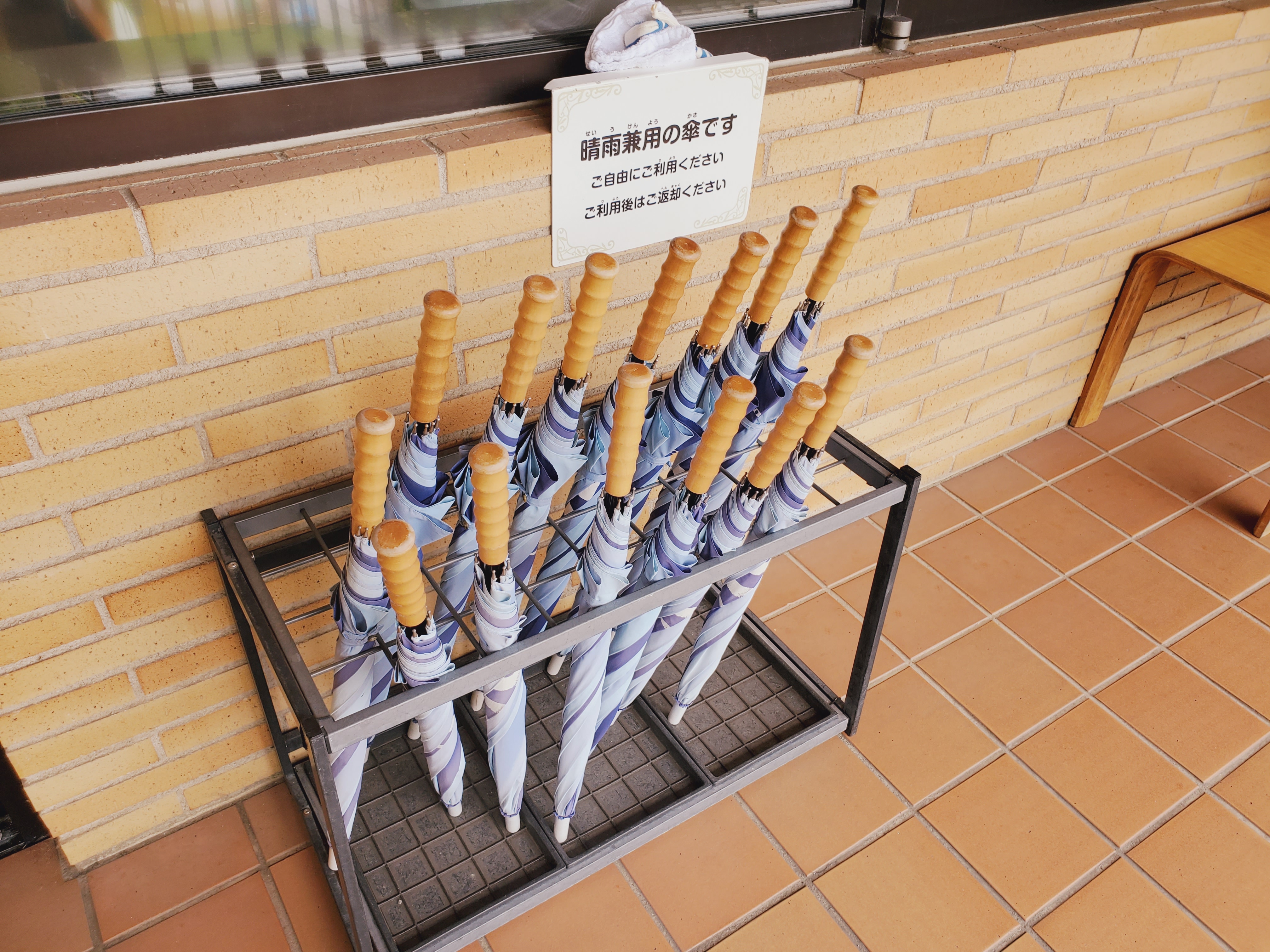 옥상 정원에 우산 서비스가 있다.