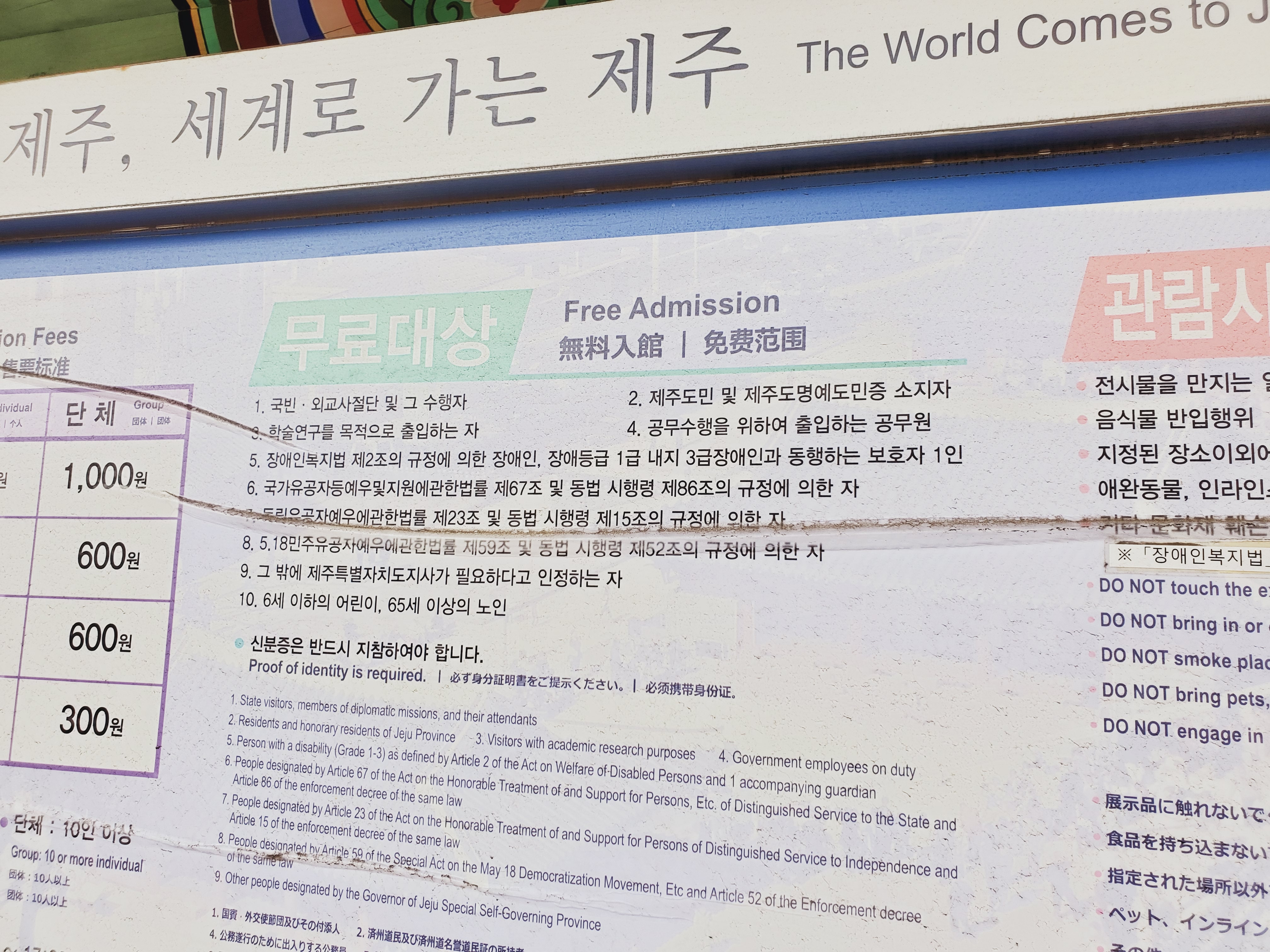 입구에 써진 안내문.