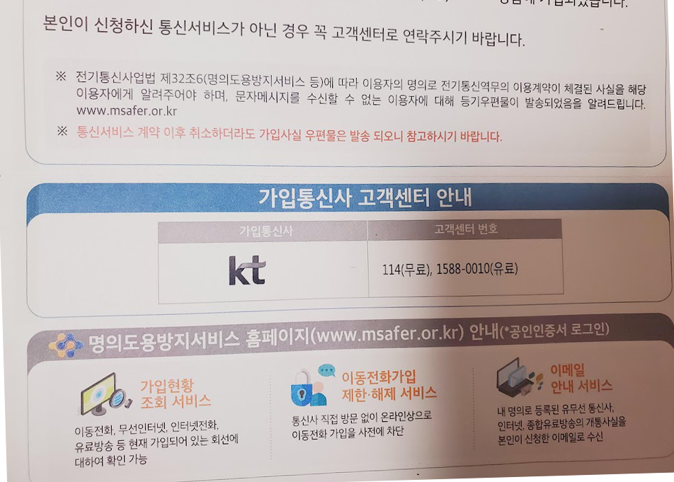나도 모르게 누가 내 이름으로 핸드폰 개통했을지도 몰라요 ㅜ