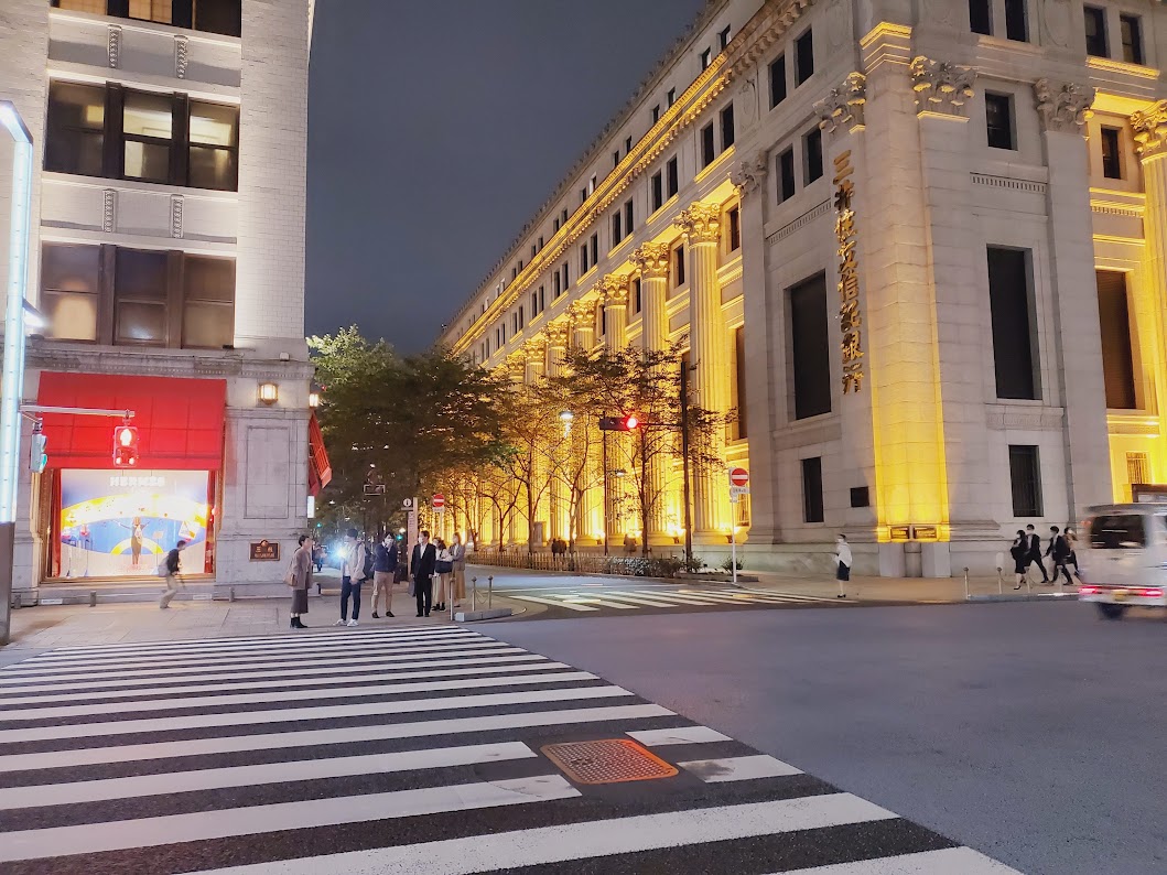 동경역에서 황거를 지나 니혼바시와 미츠코시 앞 건물들은