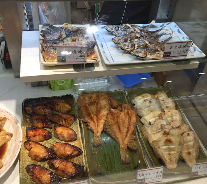 도시락이나 한국과는 조금 다른 느낌의 어묵이나 삼각 김밥 등