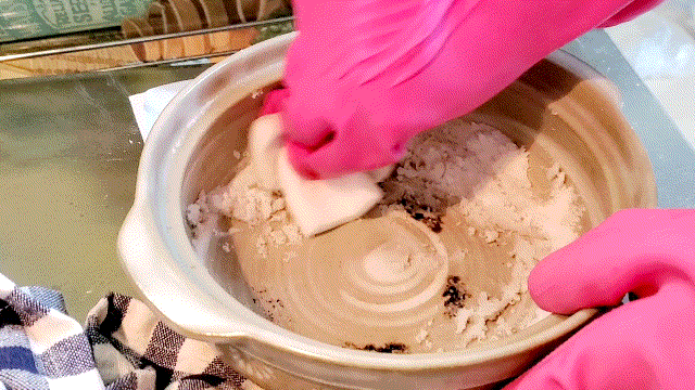- 베이킹 소다를 넣고 끓인 뒤 식히고 부드러운 스펀지로 문지릅니다.