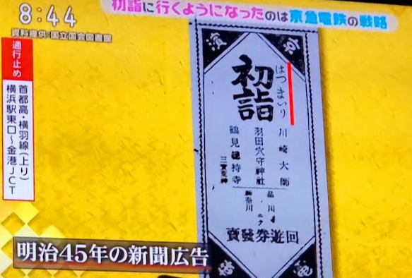 매해 정초에 가와사키다이시 신사로 손님들을 유치하려는 전략의 광고를 냈고