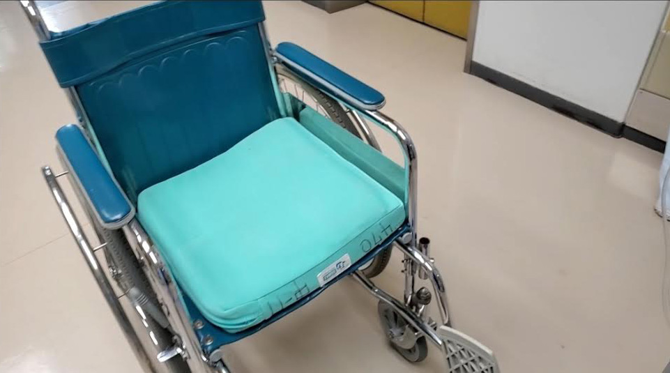 휠체어에 앉아서 이동을 했고