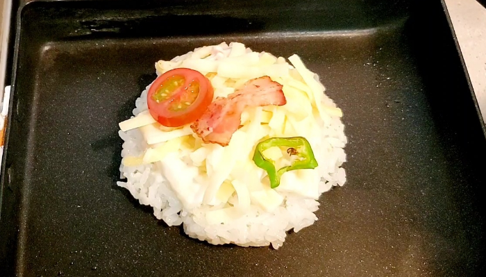 이렇게 만들어낸 밥 피자.