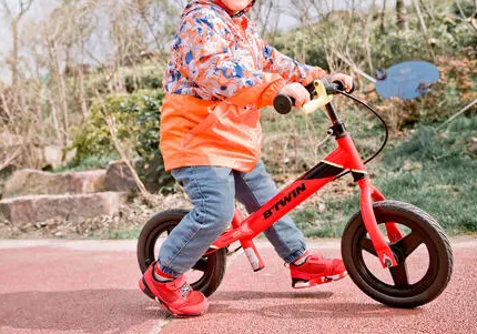 앞에 작은 자전거 타는 아이와 아이 엄마가 함께 가고 있다.