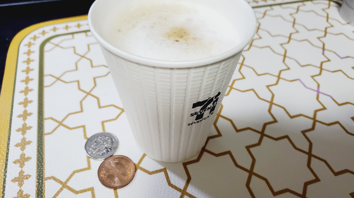 180엔짜리 라테를 뽑고 있다...