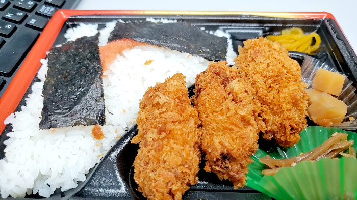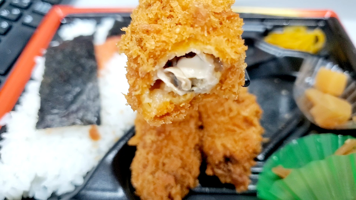 그리고 바삭하게 튀겨낸 카키후라이. 굴튀김. 도시락