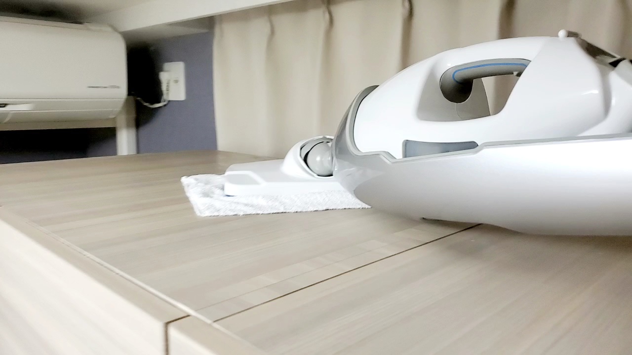 평소에 청소하지 않는 장롱 윗부분을 스팀 청소기로 닦아주고