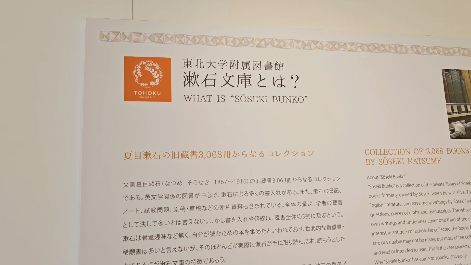 문호 나츠메 소세키(1867~1916)의 옛 장서 3,068권으로 이루어져 있습니다.