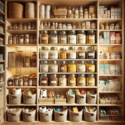 - 식료품 저장실: 주방과 연결된 작은 방이나 캐비닛으로, 통조림, 곡물, 향신료, 음료수 등 다양한 식료품을 정리하고 보관하는 공간입니다.