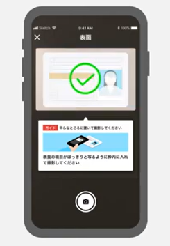 이미 카메라에 윗변이 넓은 사각형이 그려지고 그 안에 속 들어가게 기울어진 신분증을 촬영하는데