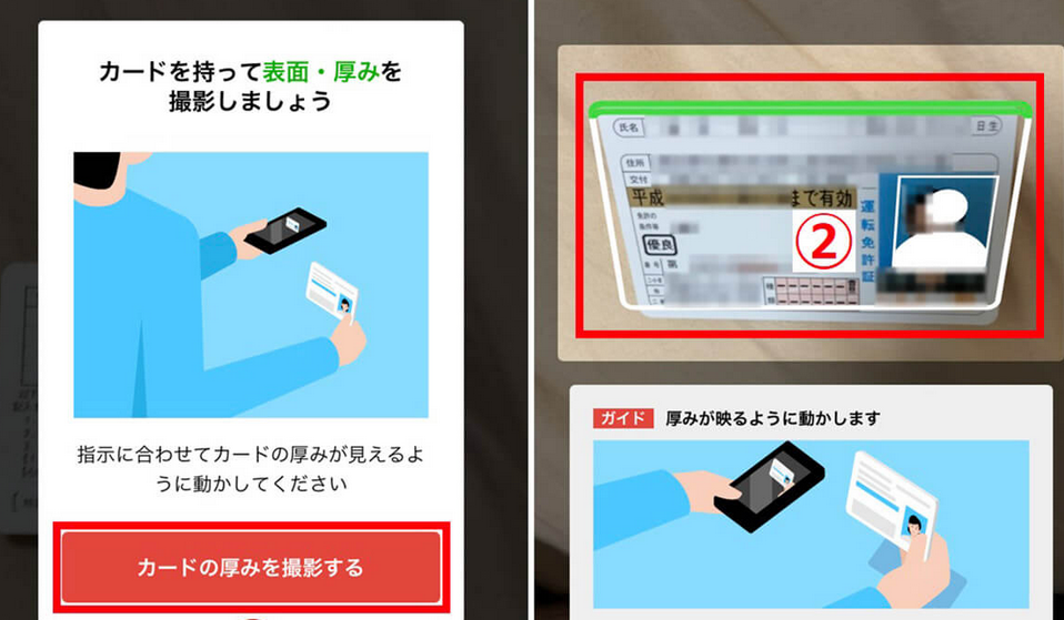 처음 신분증 표면을 찍고 다음 신분증을 기울여 두께를 찍은 후