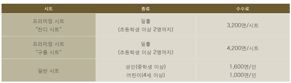 일반 좌석 1600엔/ 1인