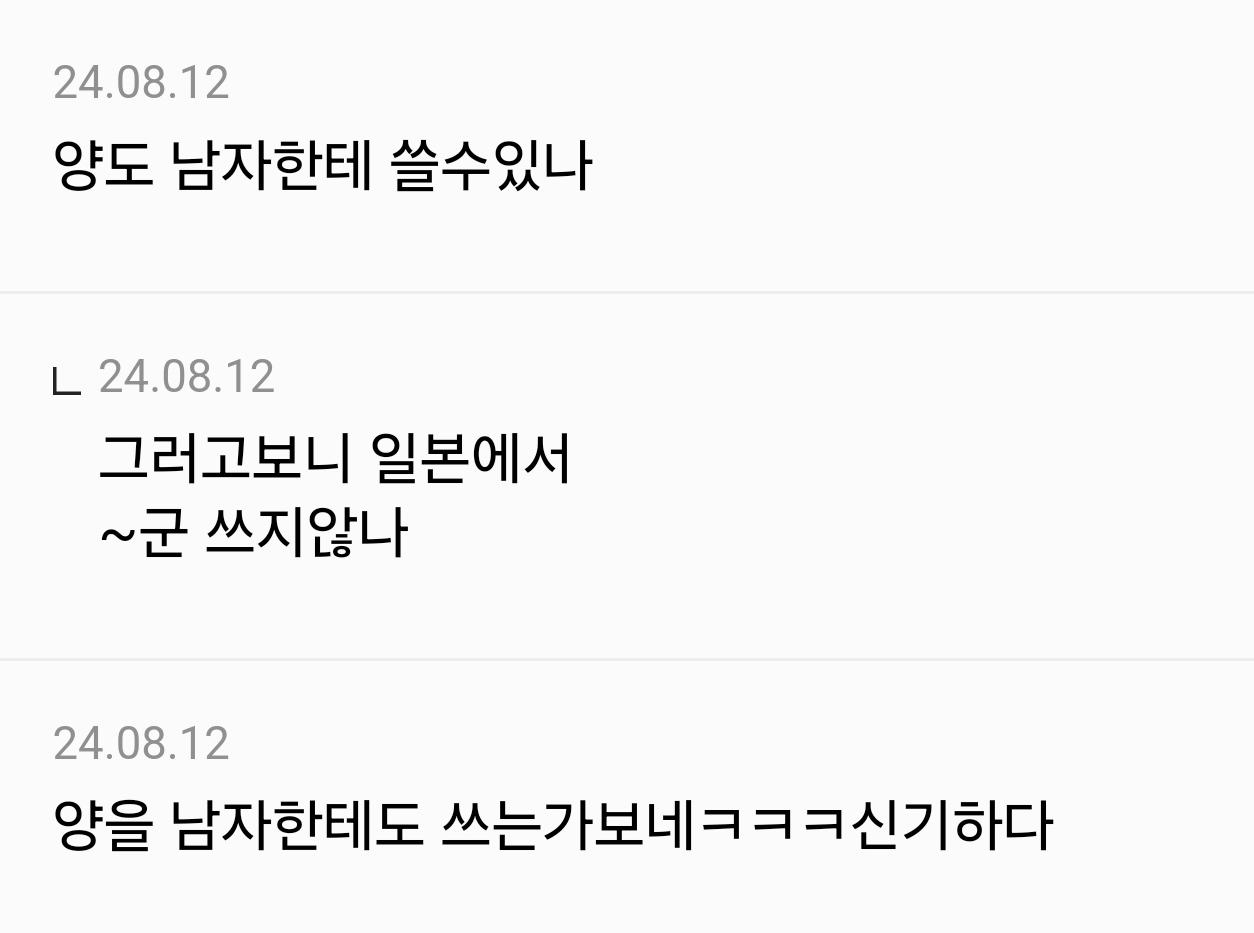 한국에서는 여자에게 양이라고 하는데 일본 사람들은 남자에게 양이라고 하네??