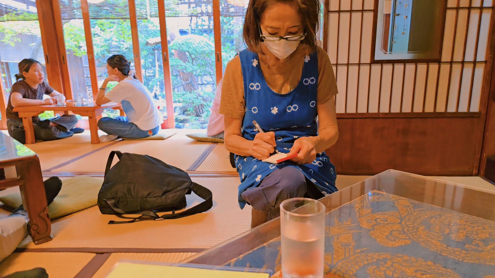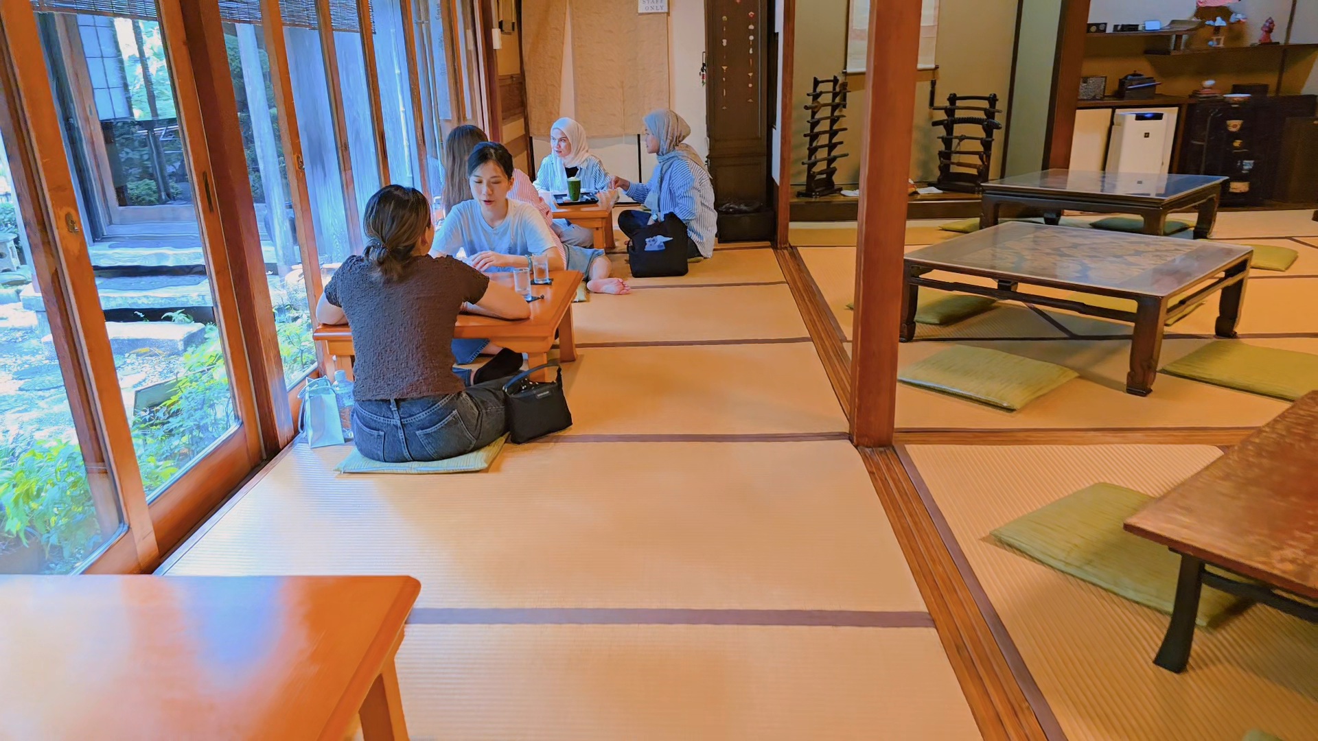 안쪽 테이블로 다다미를 밟으며 들어가 앉는다.