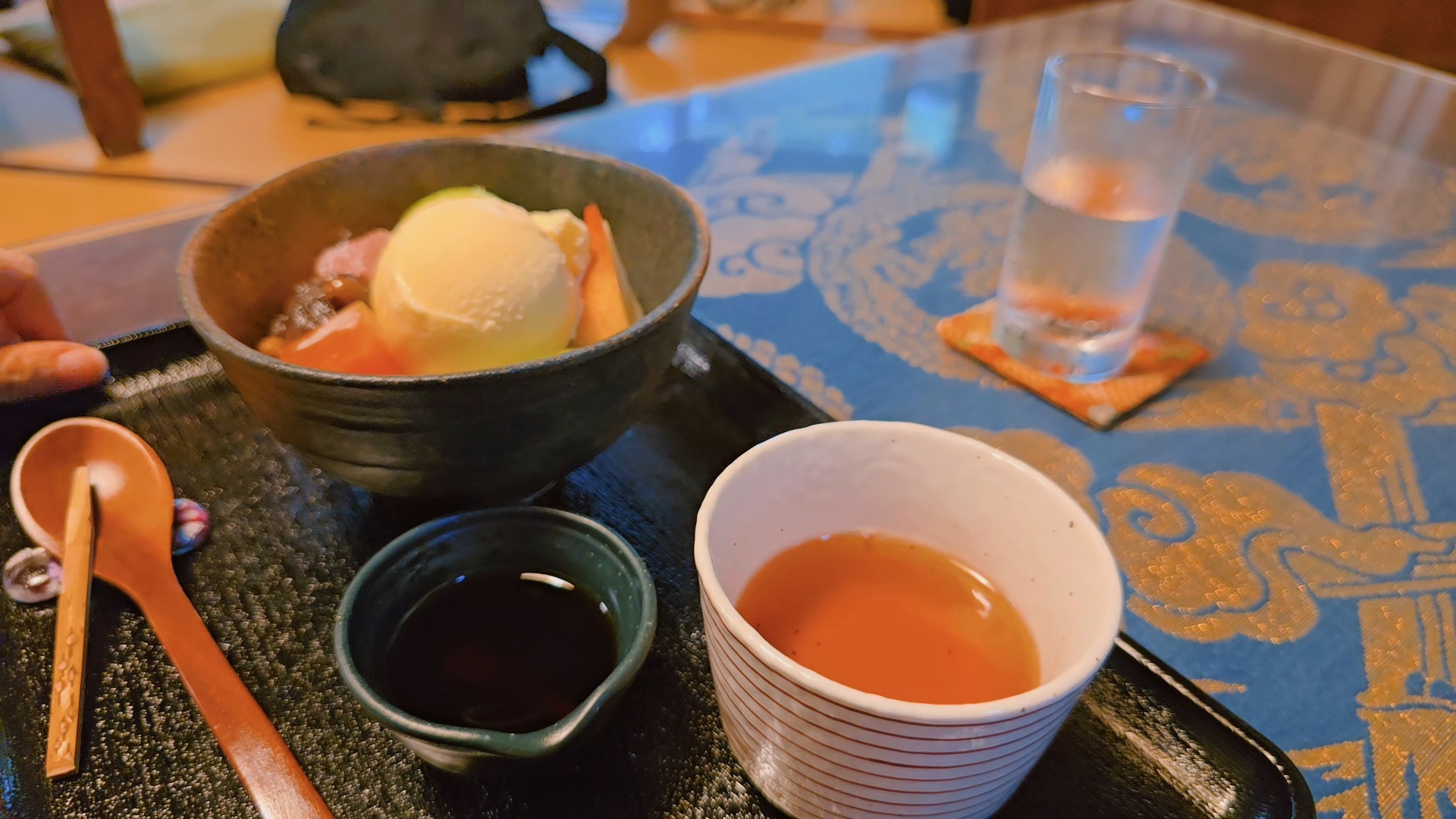 크림 앙미쯔에도 호지차 따뜻한 한 컵이 나오긴 한다.