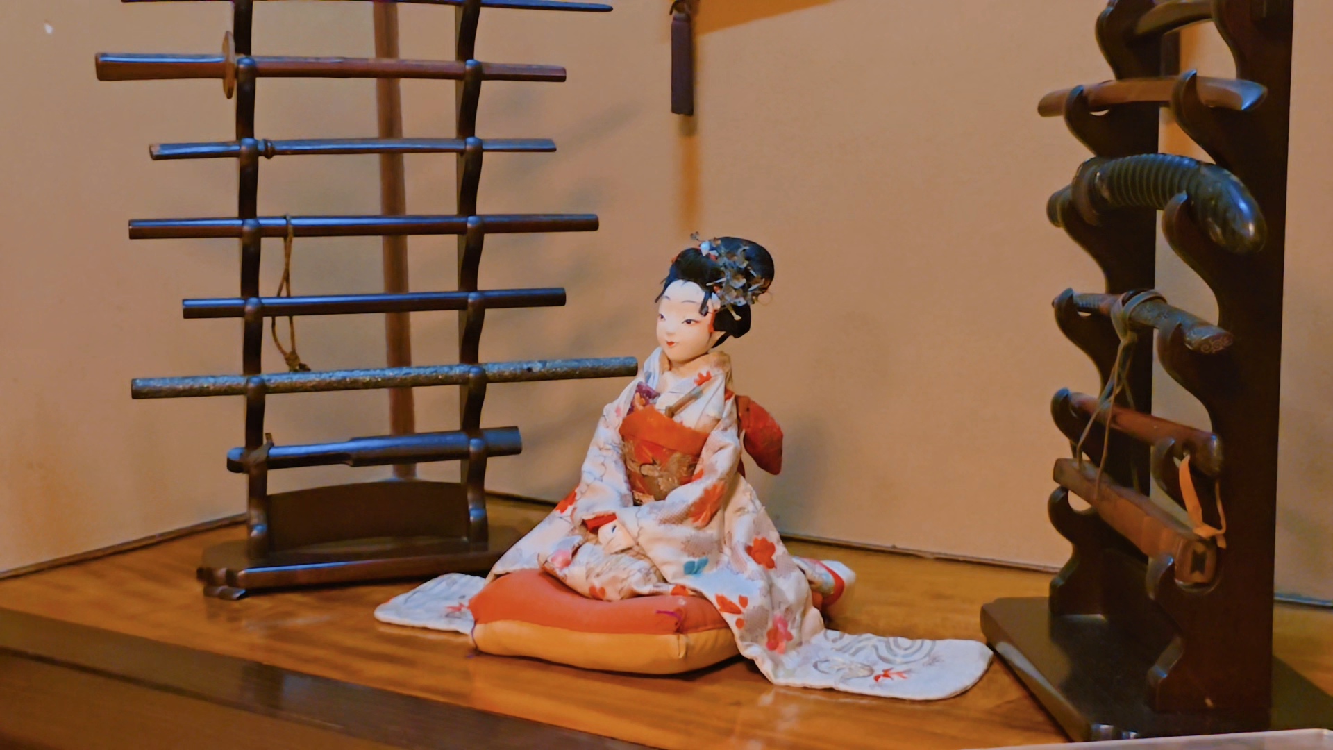 도코노마에 장식된 인형 옆에 칼자루들이나