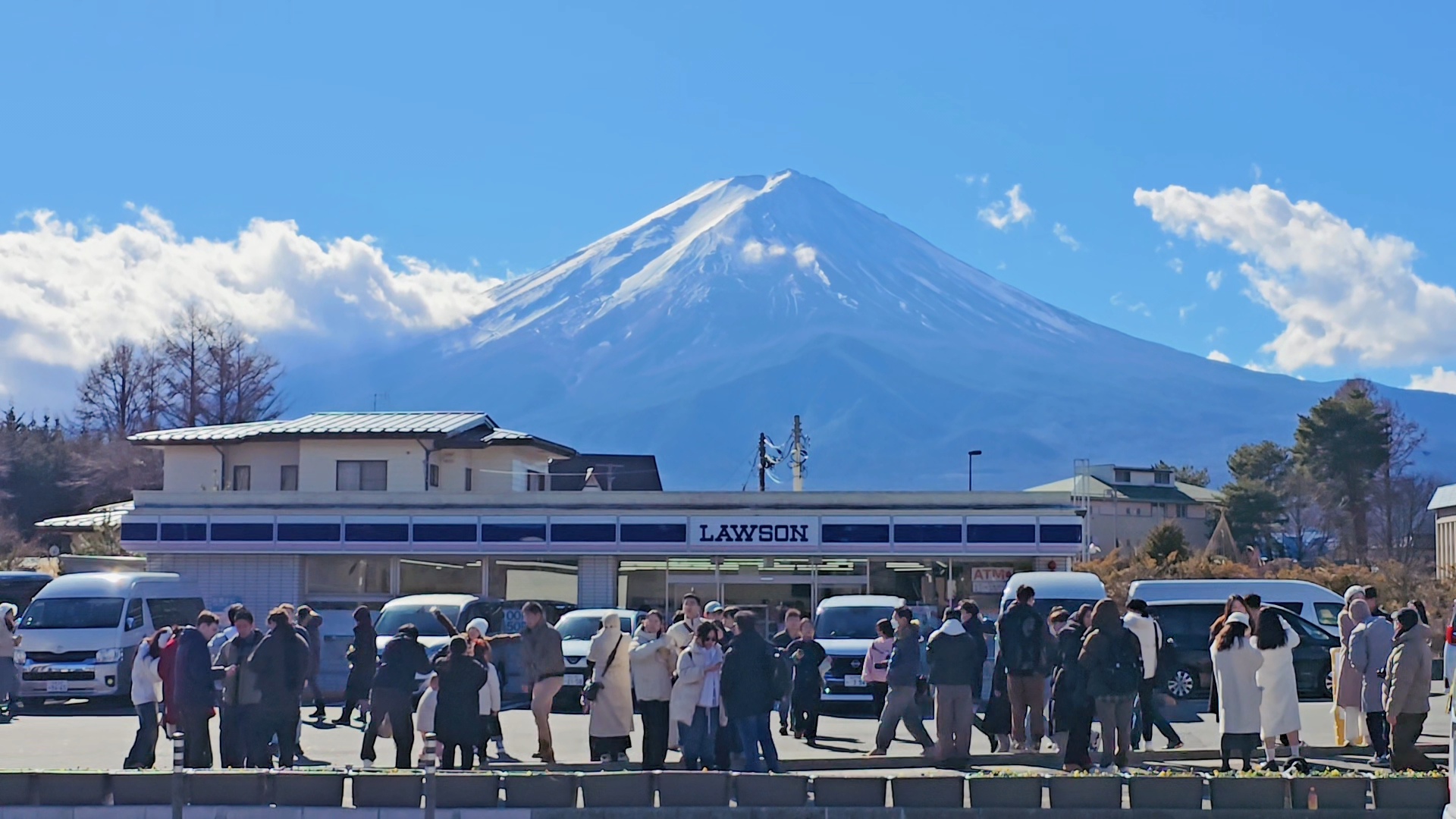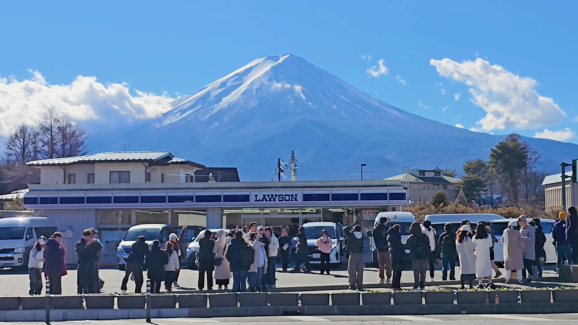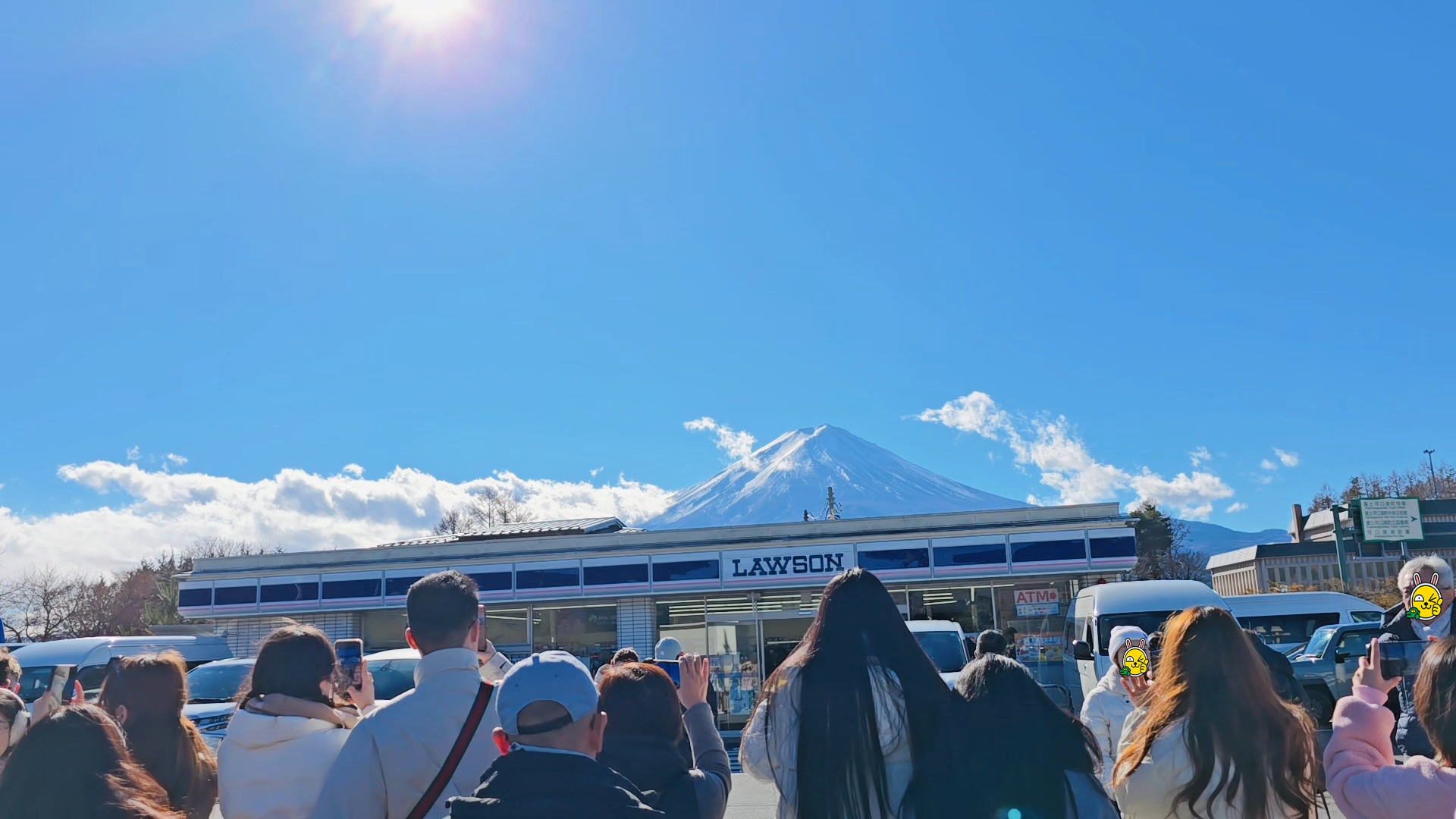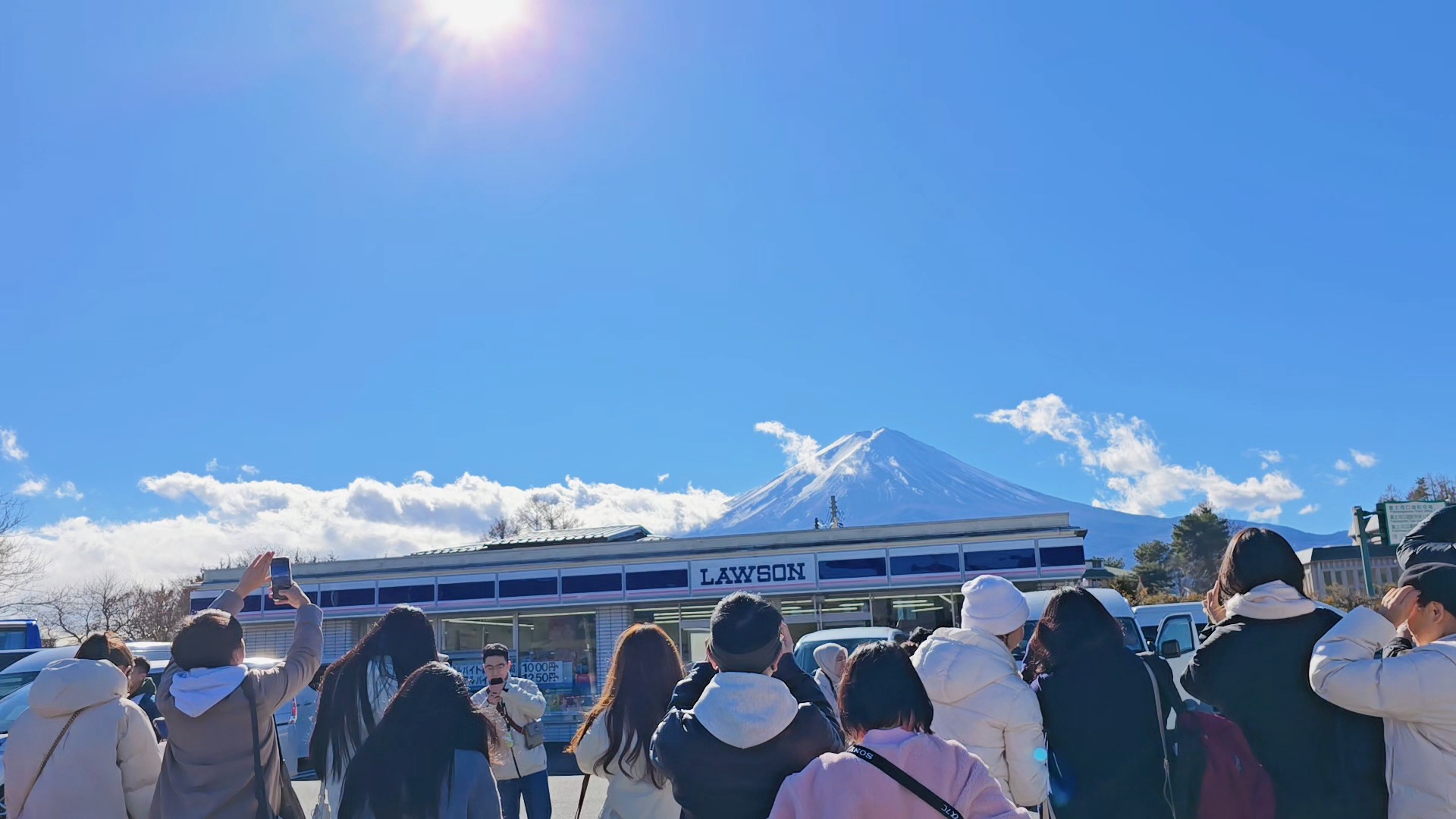 구름 한 점 없는 후지산을 지붕에 업은 로손에서