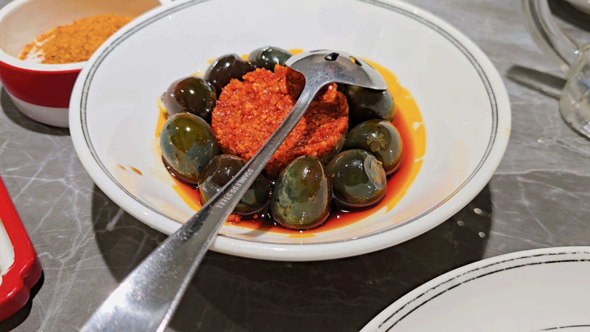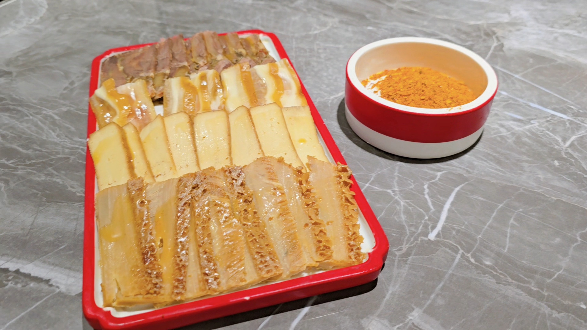 가운데는 튀긴 간마늘을 중국 기름장에 버무린것