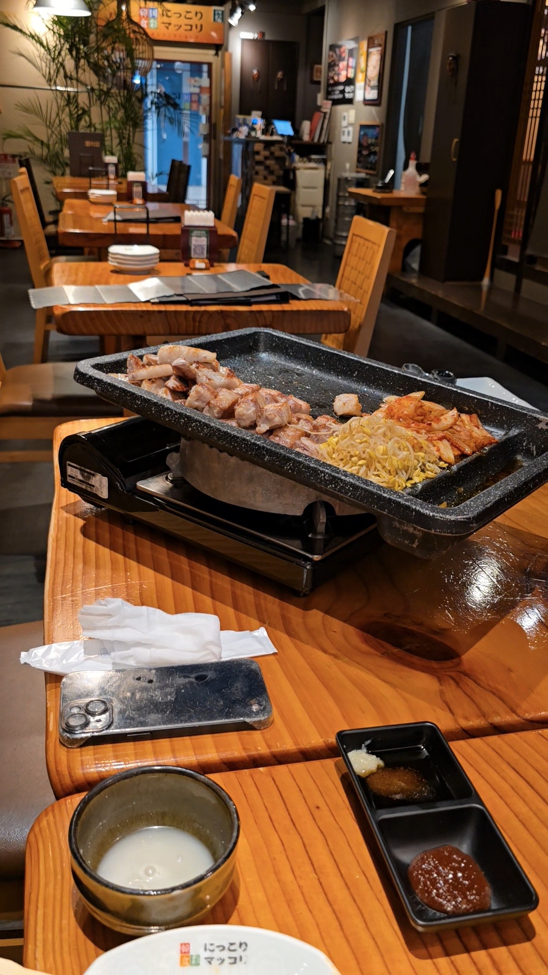 단지 주먹밥 하나에 비실비실한 직원을 살리려 한국식당에서 고기를 먹게 되었다.