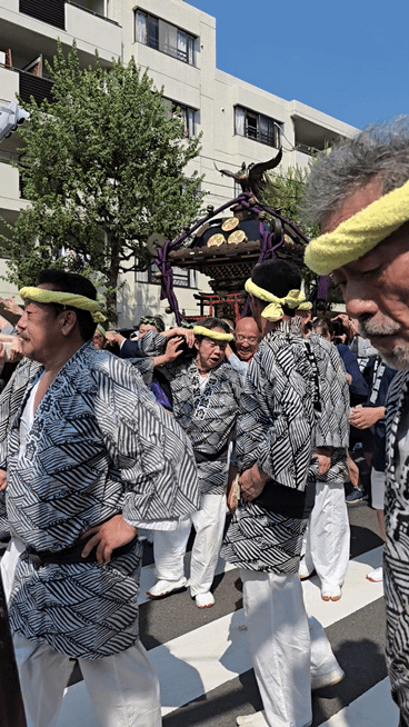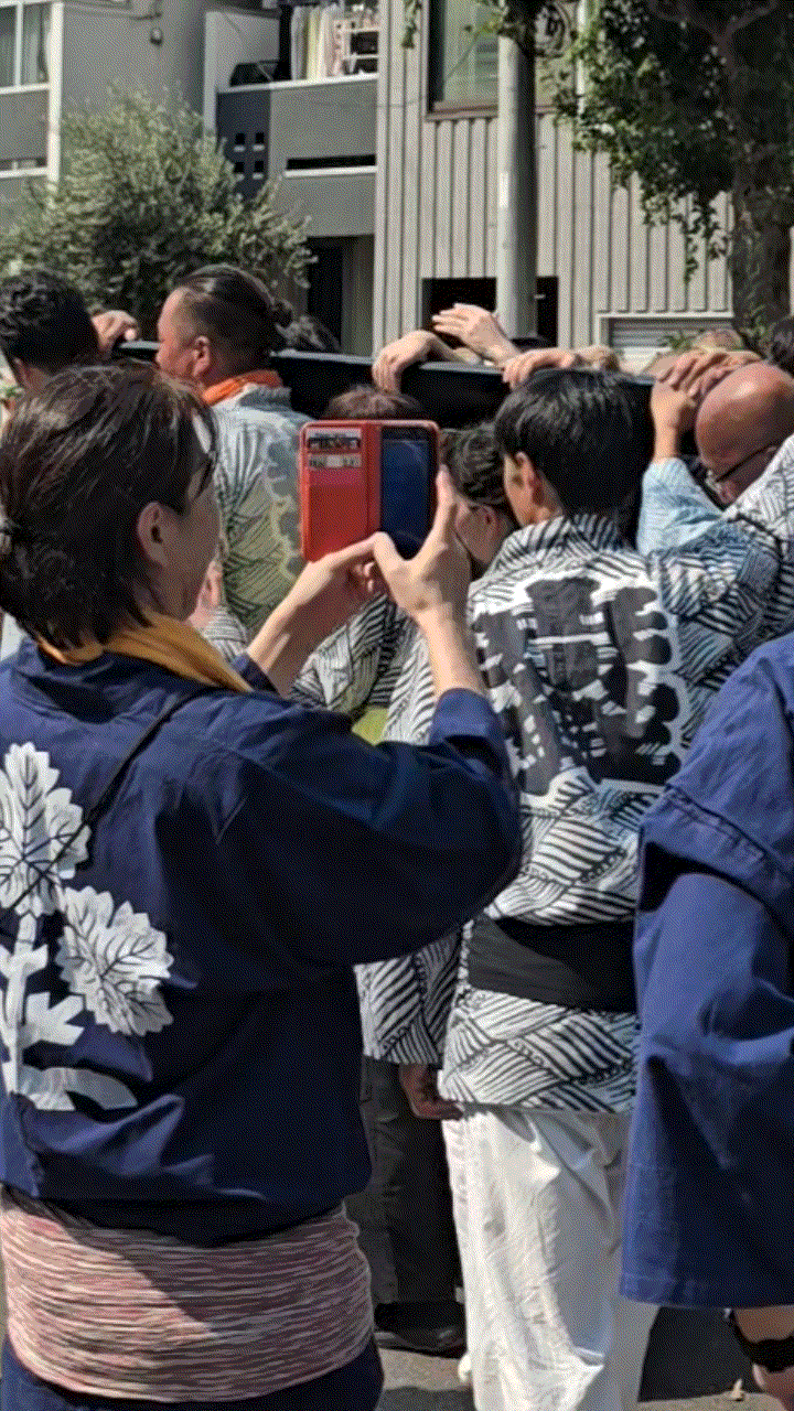 잘 보면 앞 줄에 여자분들도 미코시를 이고 있다.