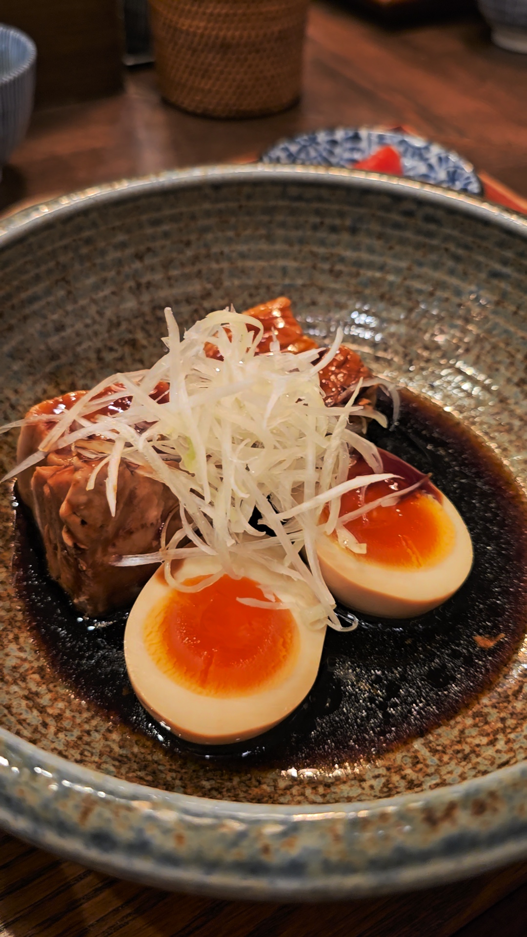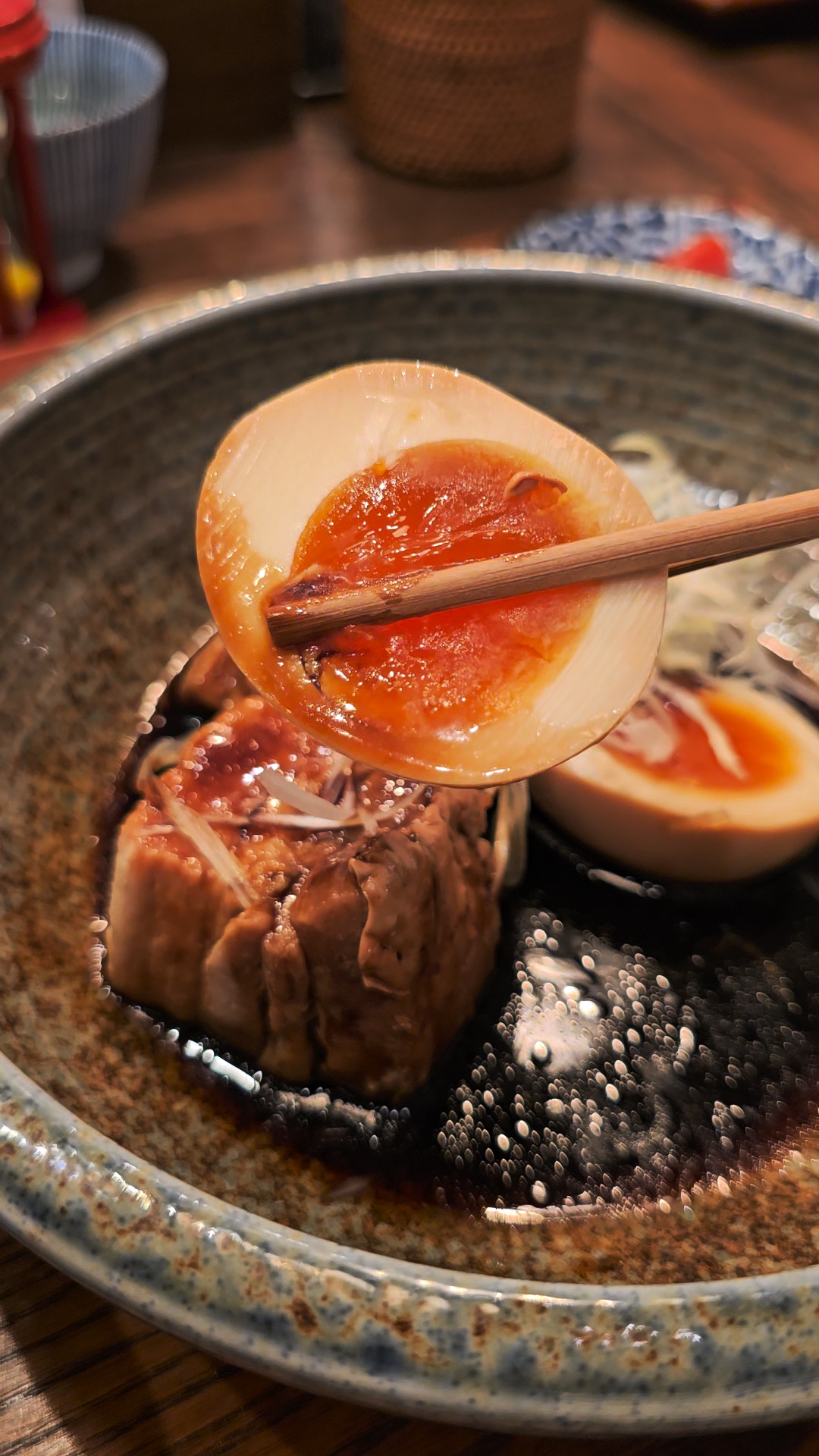메인인 가쿠니. 돼지고기 장조림이 부드럽고 반숙 달걀도 맛이 잘 배어 들었다.