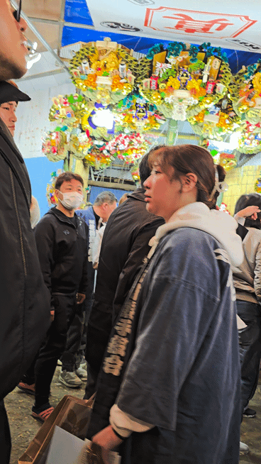 구매자·판매자 모두가 “좋은 해가 되세요”라는 뜻을 담아 크게 외치고 손을 치면서,