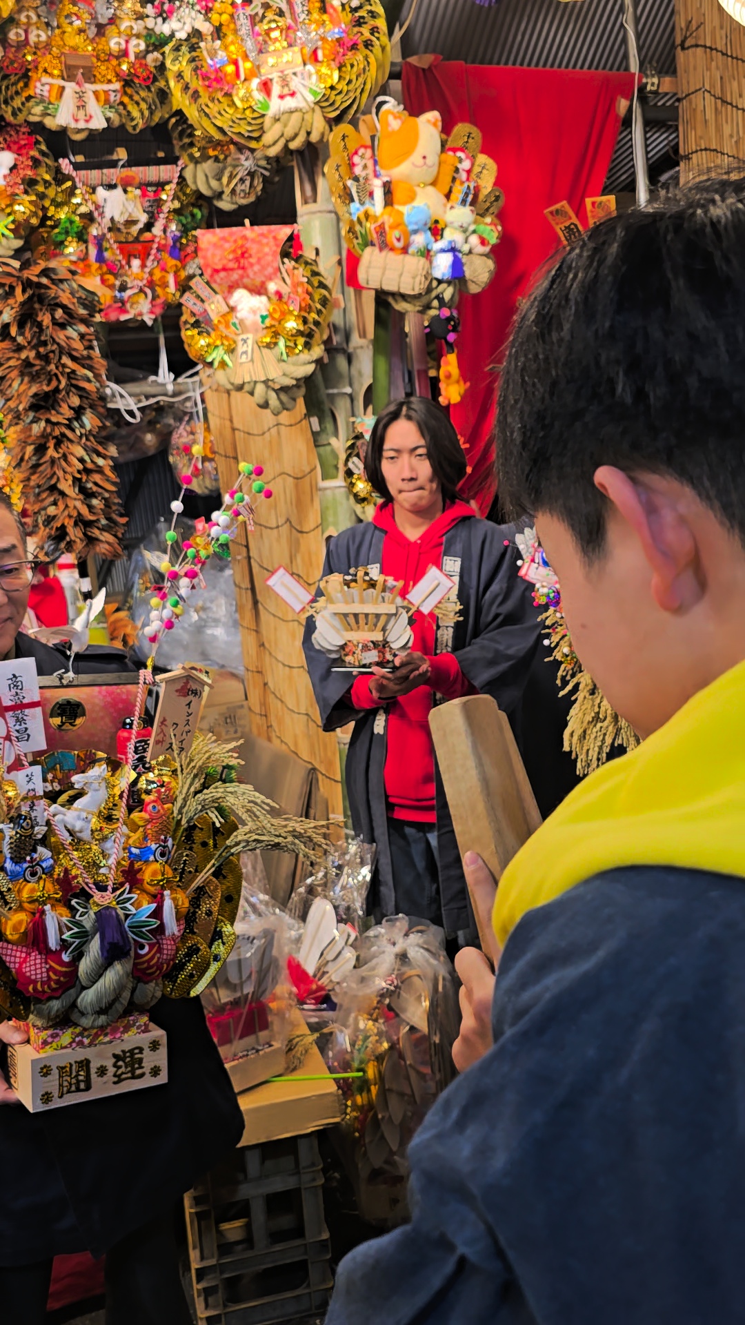제품(주로 縁起熊手 쿠마테) 즉 갈쿠리를 가게 사장님인 구매자가 선택하고 가격이 합의되면,