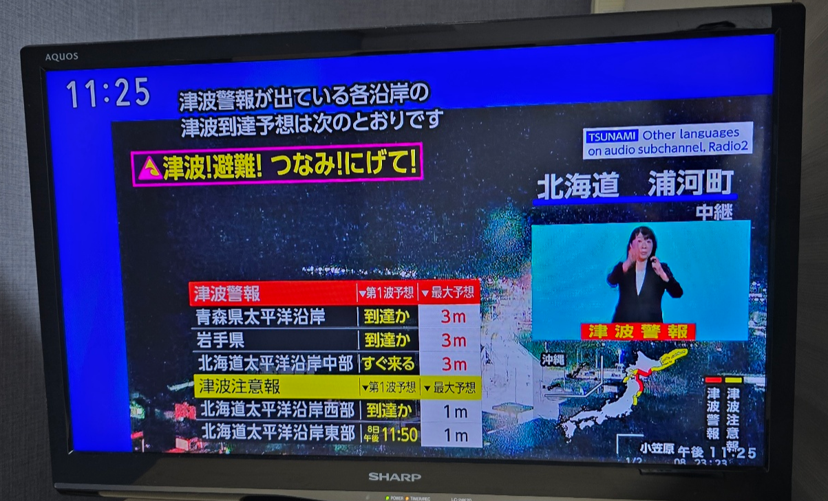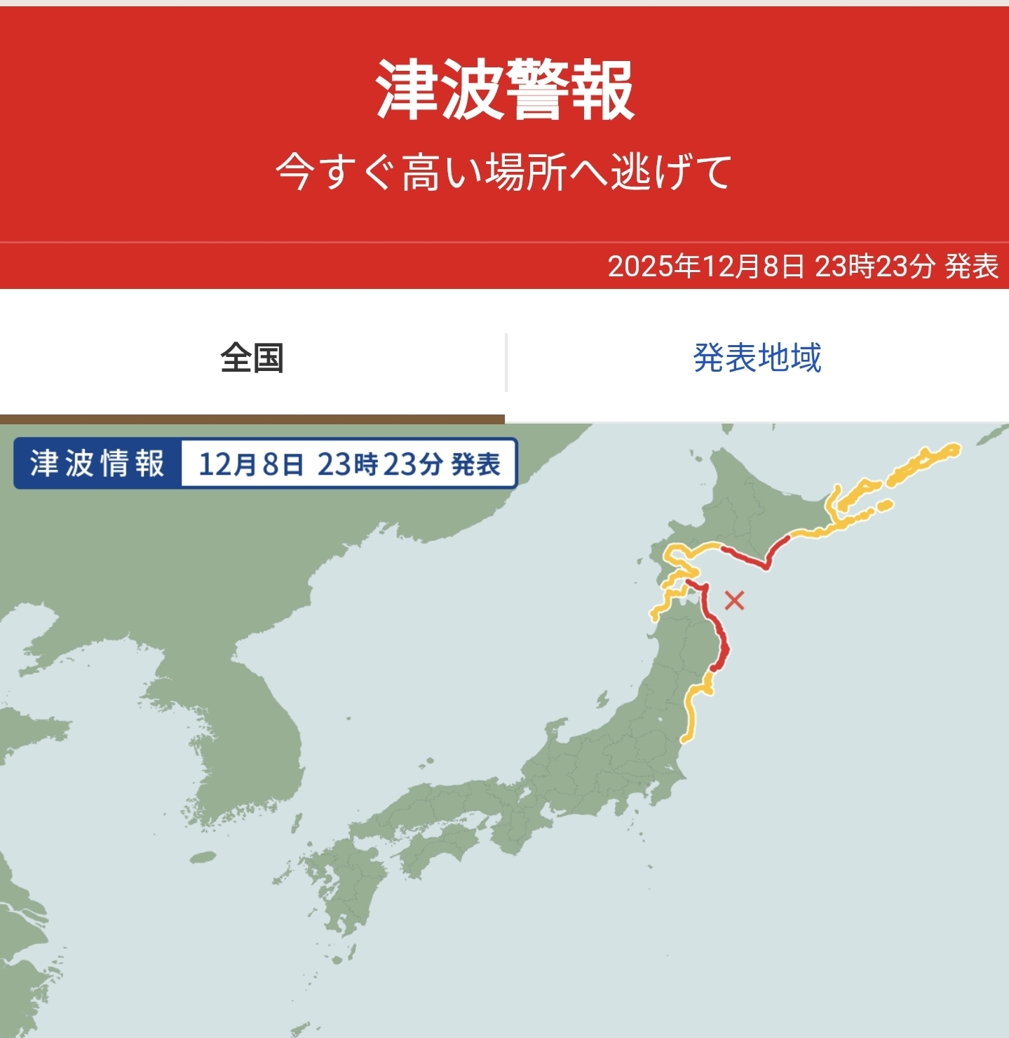저 홋카이도와 아오모리. 센다이 근처.. 후쿠시마 근처에 쓰나미가 몰려온다는 것이다.