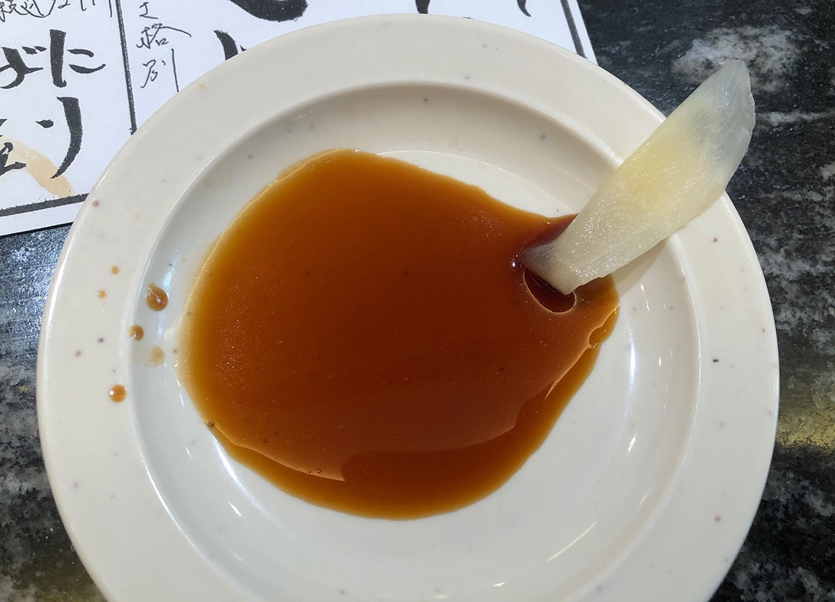 간장 안 찍거나 밥에 찍거나. 제공된 가리라는 생강을 붓 삼아 간장을 발라 먹는 것.