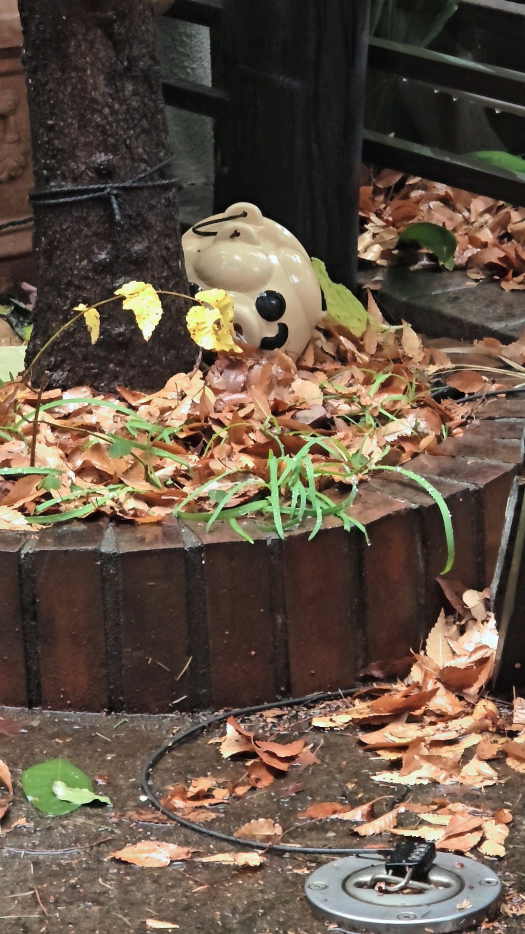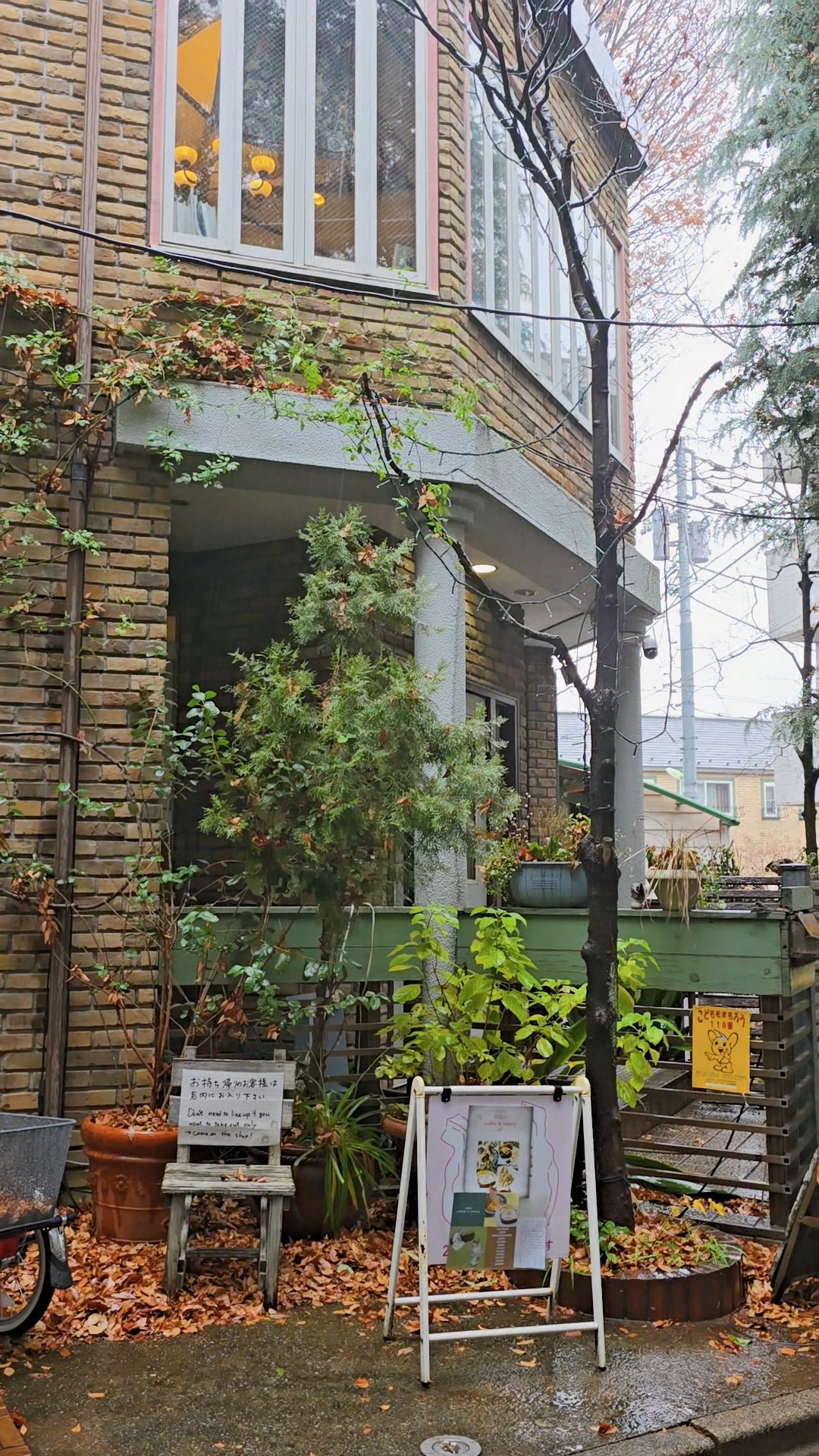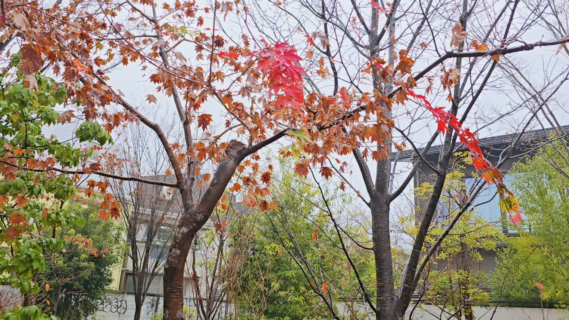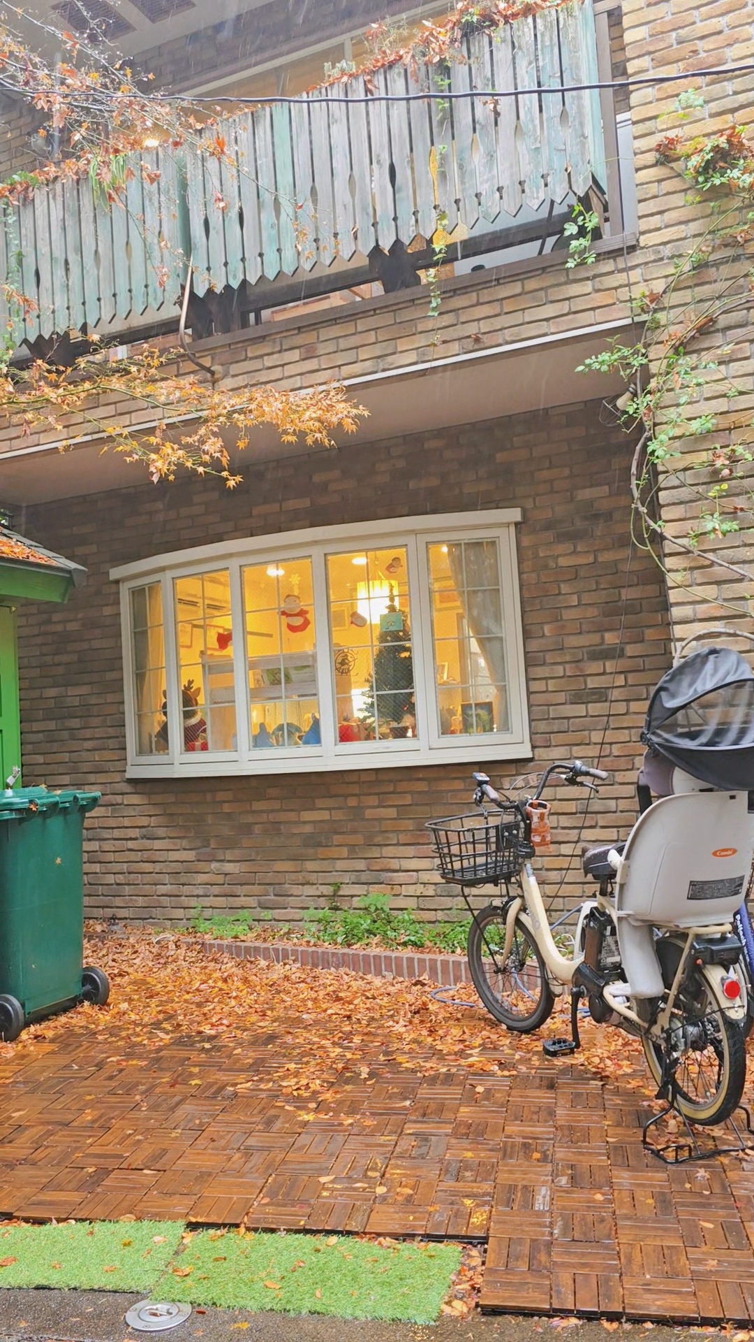 역과 연결된 통로 정원에 아직 단풍이 남아있다.