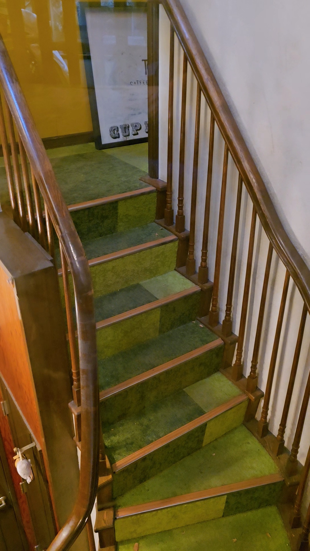 초록 카펫이 깔린 빙글 계단을 올라 카페에 앉으면