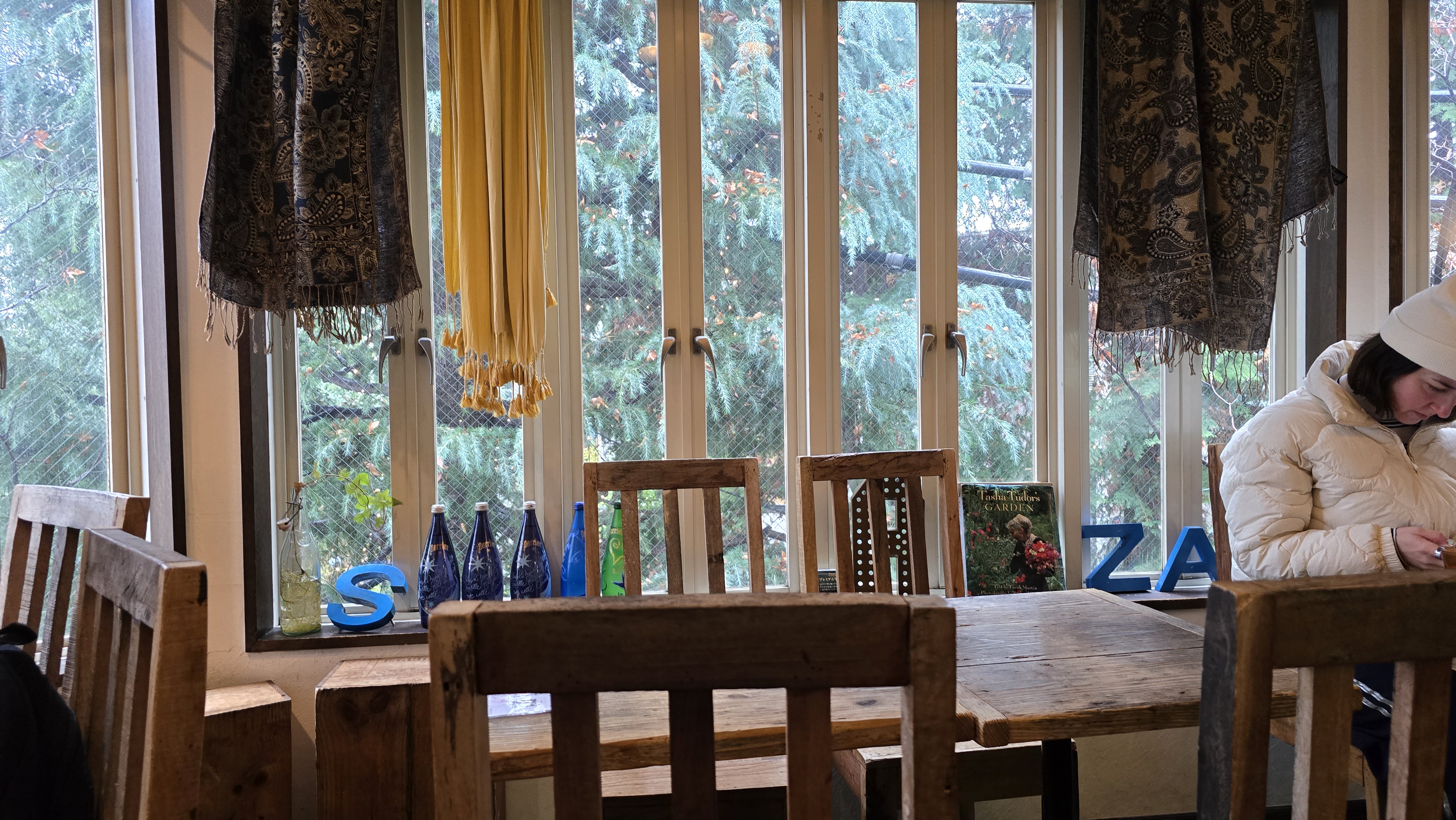 창 밖에는 예쁜 나무가 보이고.