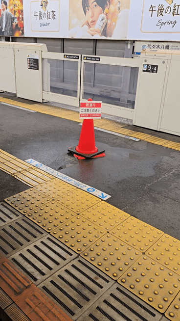 딱 그 자리에 비 떨어진다고.. 역에서 주의하라는 배려?