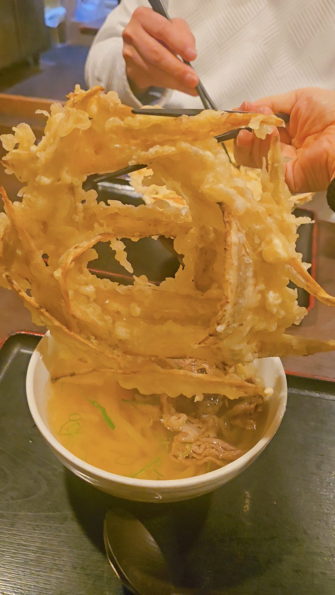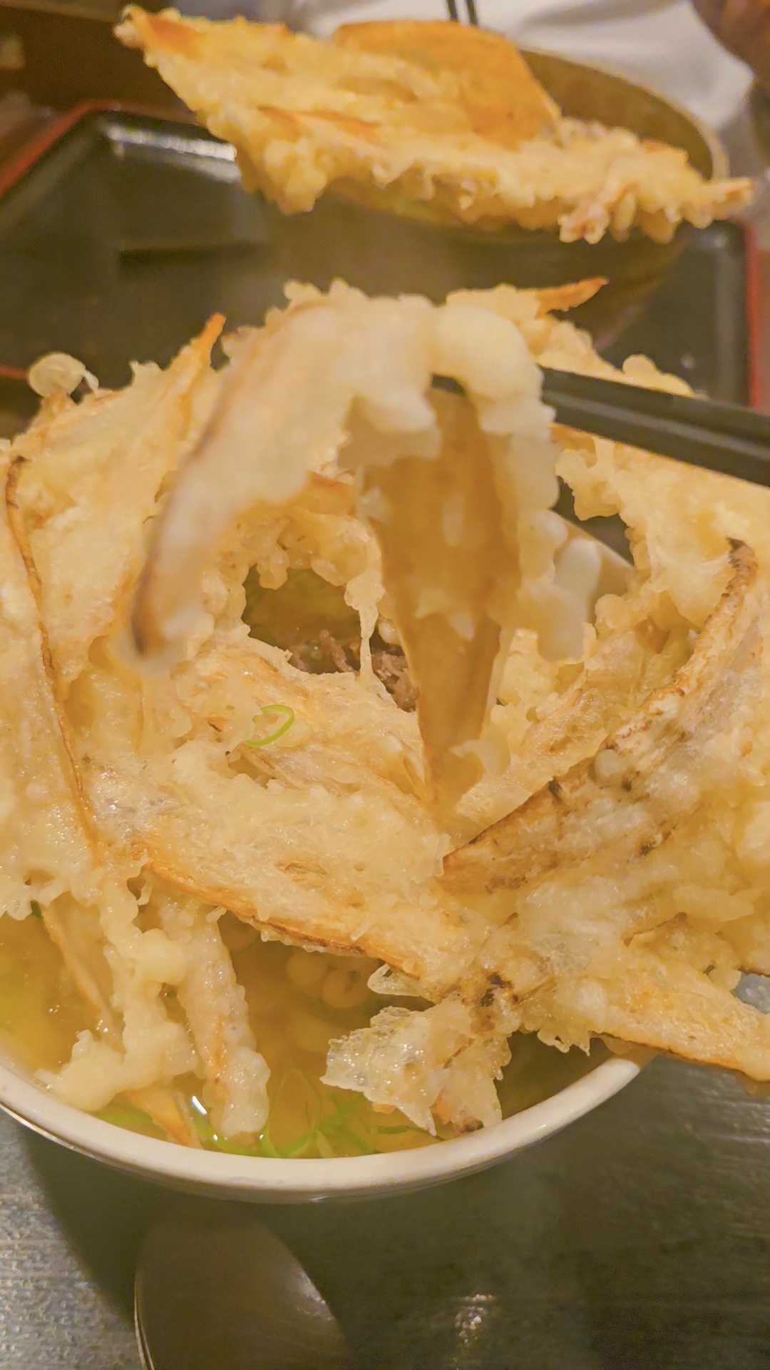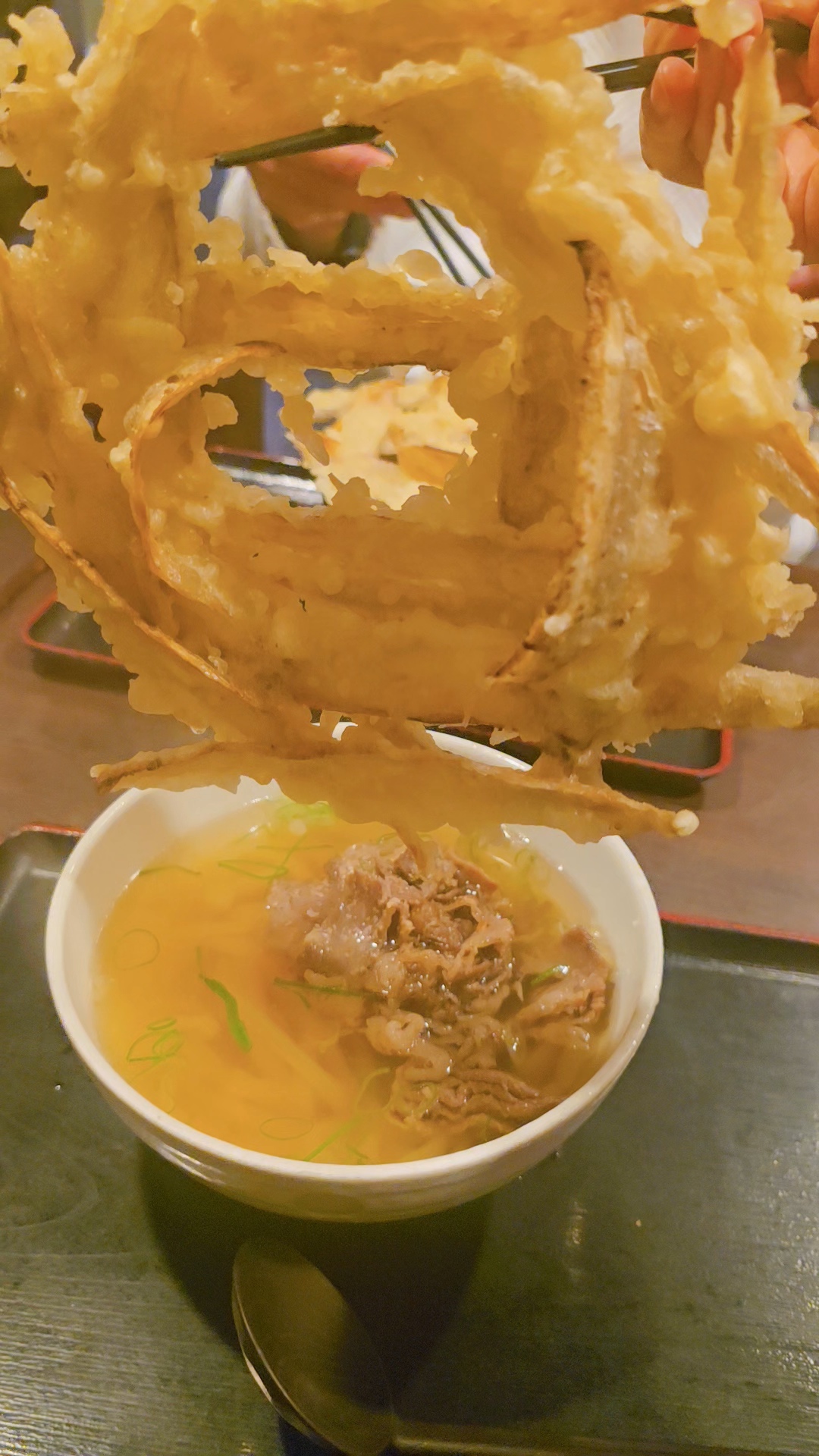 우엉 튀김도 들어가고 고기도 들어간 우동.