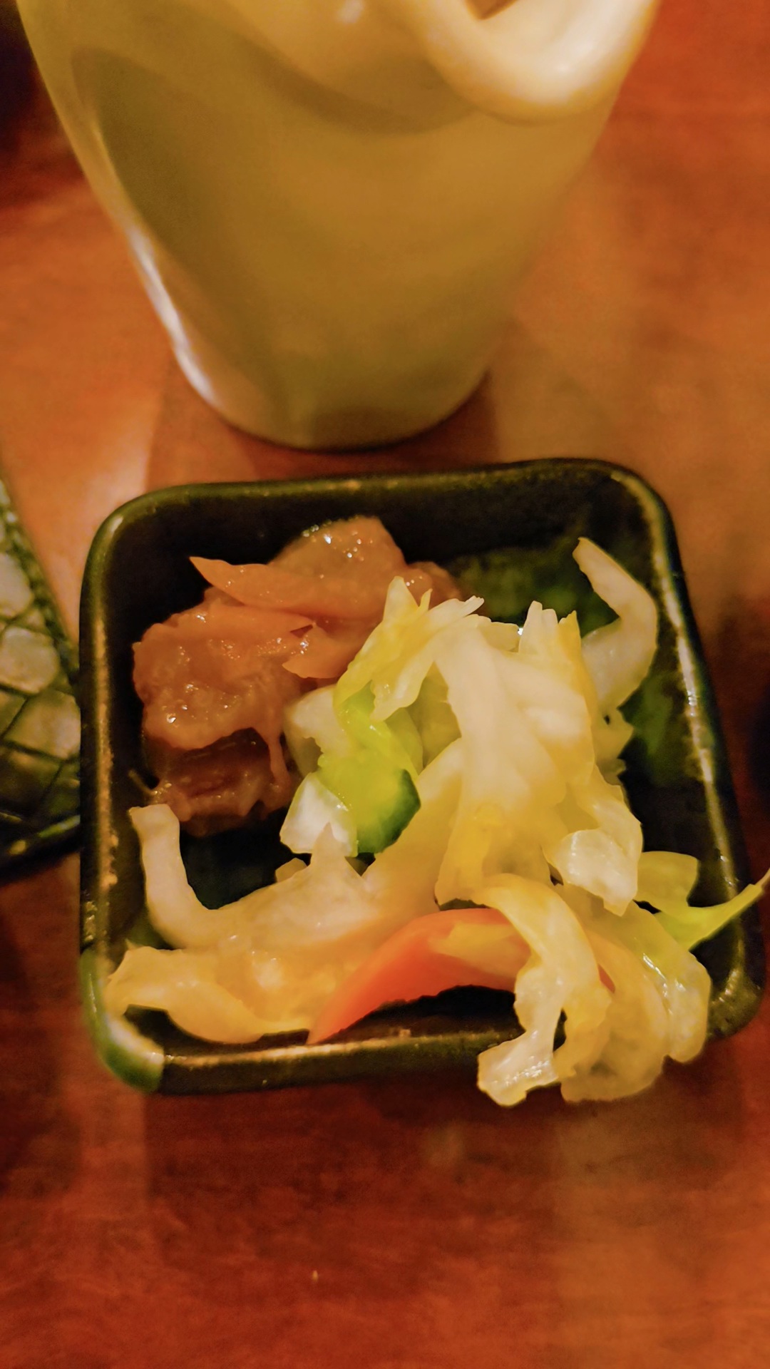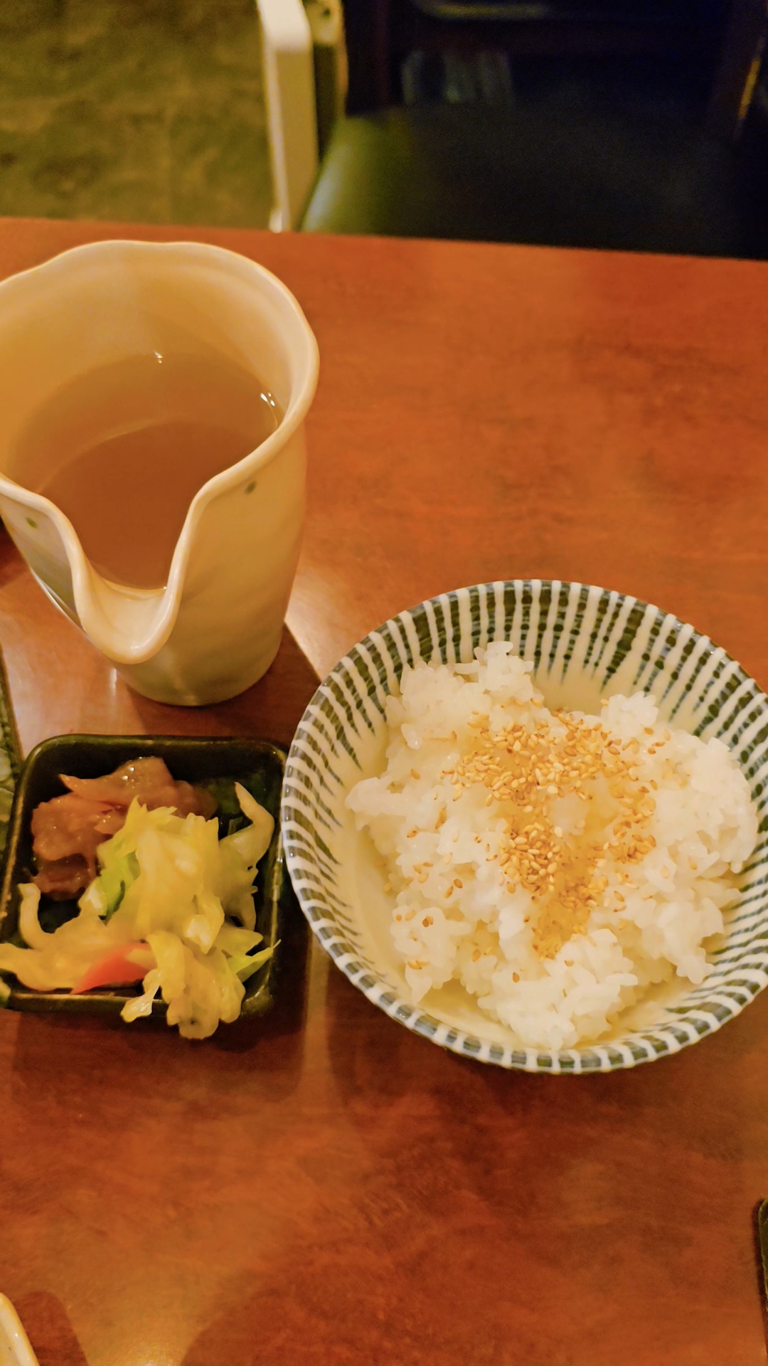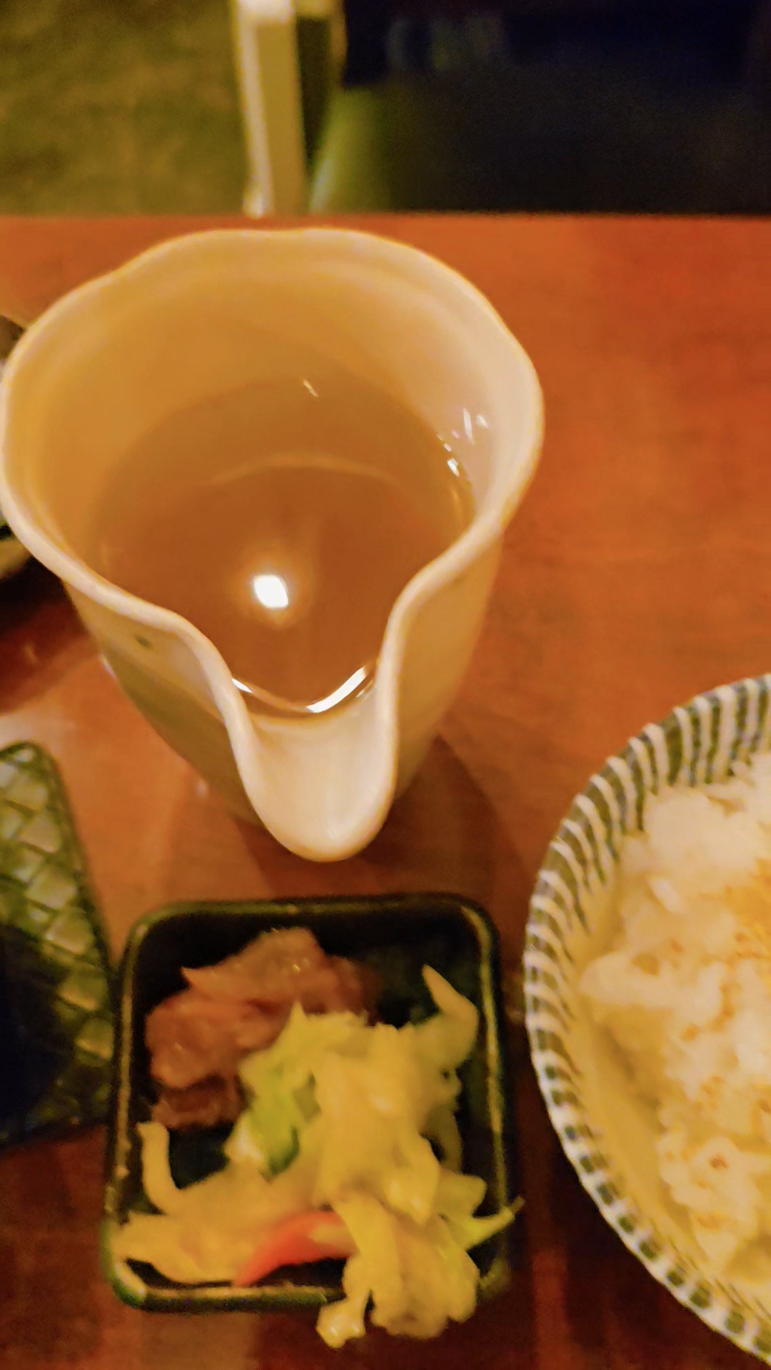 가게가 준비해준 뜨거운 물 담은 주전자와 주문한 아카키리시마