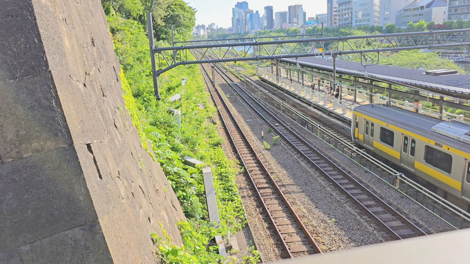 에도 시대의 역사를 고스란히 품은 「牛込橋」(우시고메바시, 우시고메 다리)와 그 옆에 남은 성벽 유적이 존재한다.