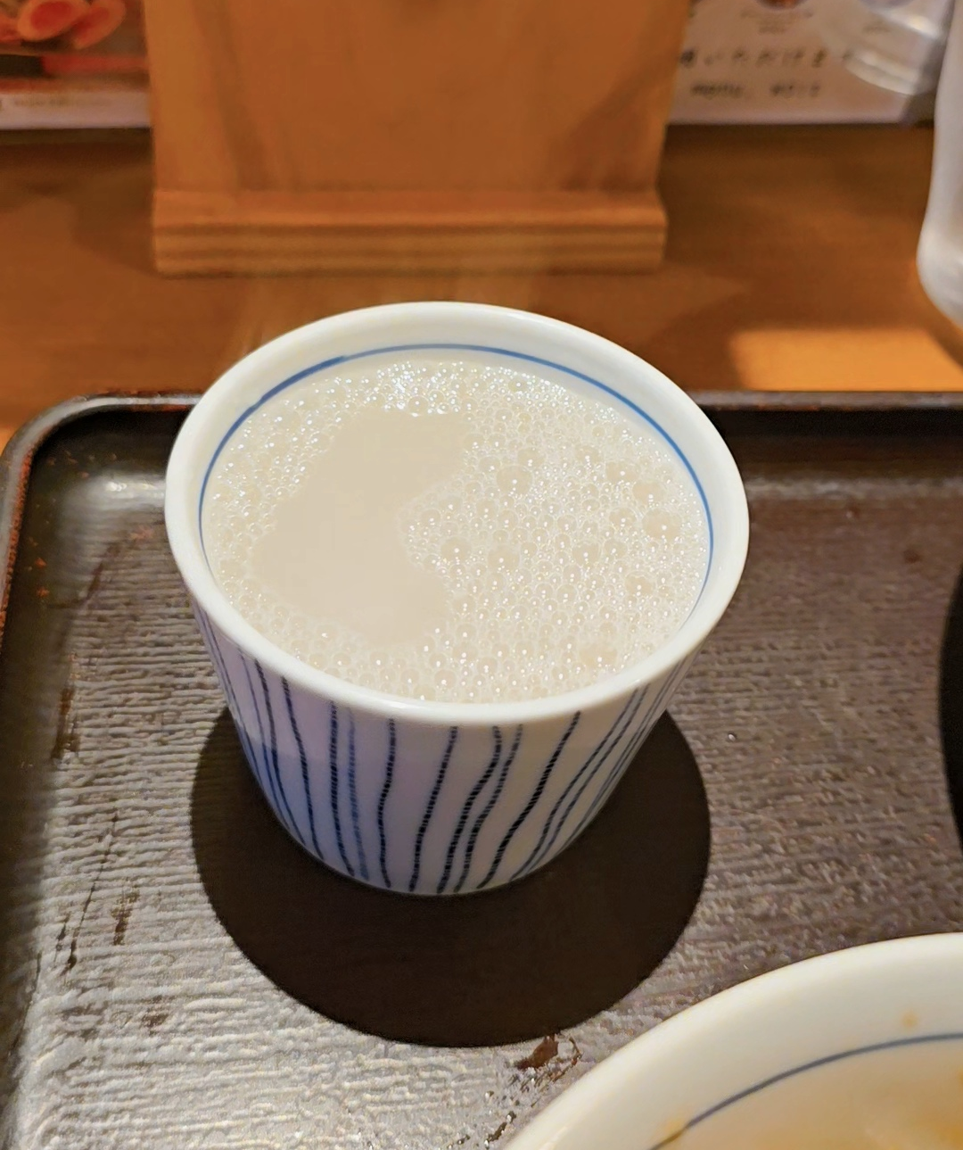 먹기도 전에 육수에 소바유를 섞으면.