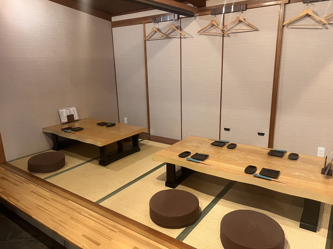 - 호리고타츠 (掘りごたつ): 바닥을 파서 발을 아래로 내릴 수 있게 만든 좌석입니다. 좌식(다다미)의 운치는 살리면서 다리가 저리지 않아 외국인과 젊은 층이 선호합니다.