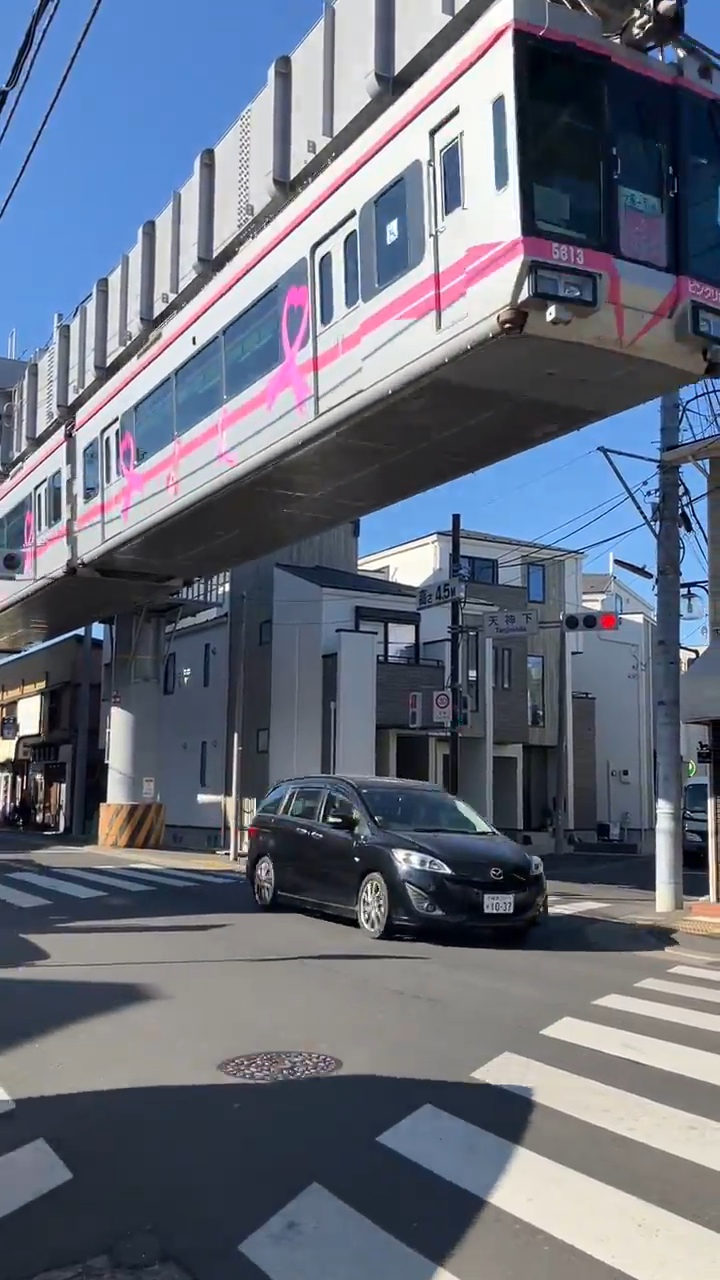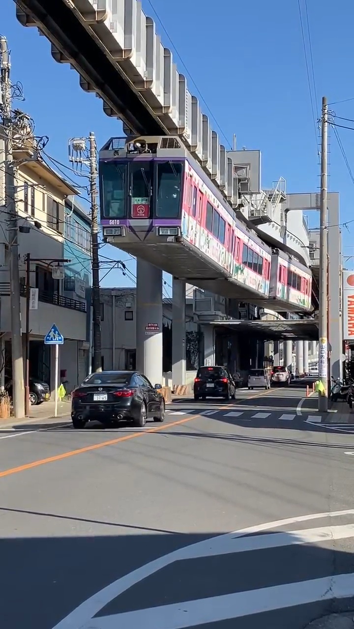 쇼난 모노레일은 위에서 매달린 현수식(懸垂式)이다.